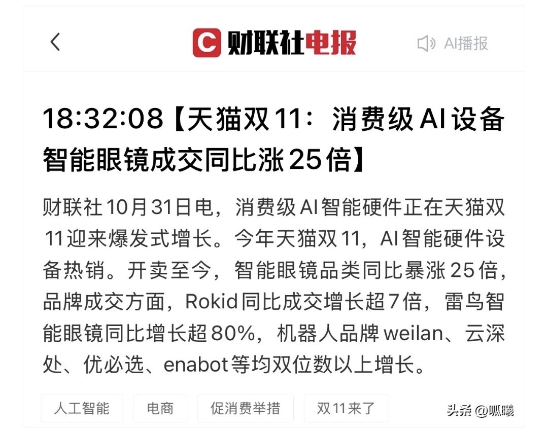 $利亚德(SZ300296)$ AI眼镜行情炸上天了。