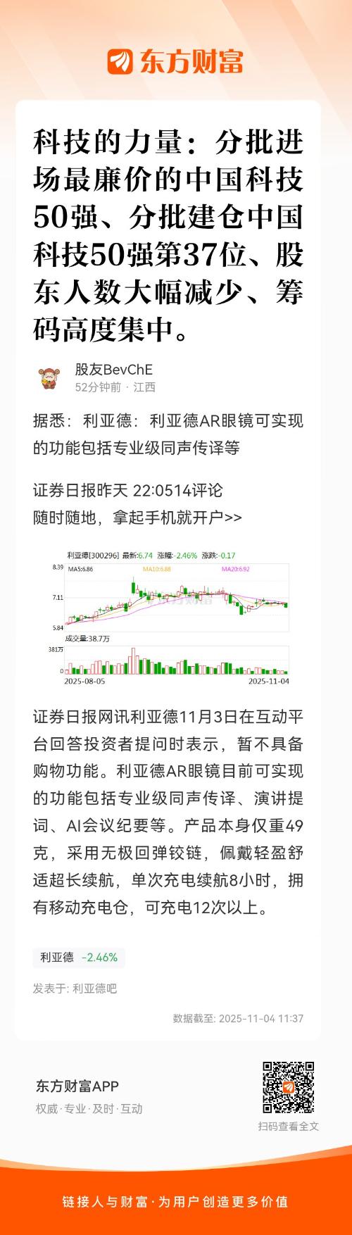 证券日报网讯利亚德11月3日在互动平台回答投资者提问时表示,暂不具备购物功能。利亚德AR眼镜目前可实现的功能包括专业级同声传译、演讲提词、AI会议纪要等。产品本身仅重49克,采用无极回弹铰链,佩戴轻盈舒适超长续航,单次充电续航8小时,拥有移动充电仓,可充电12次以上。