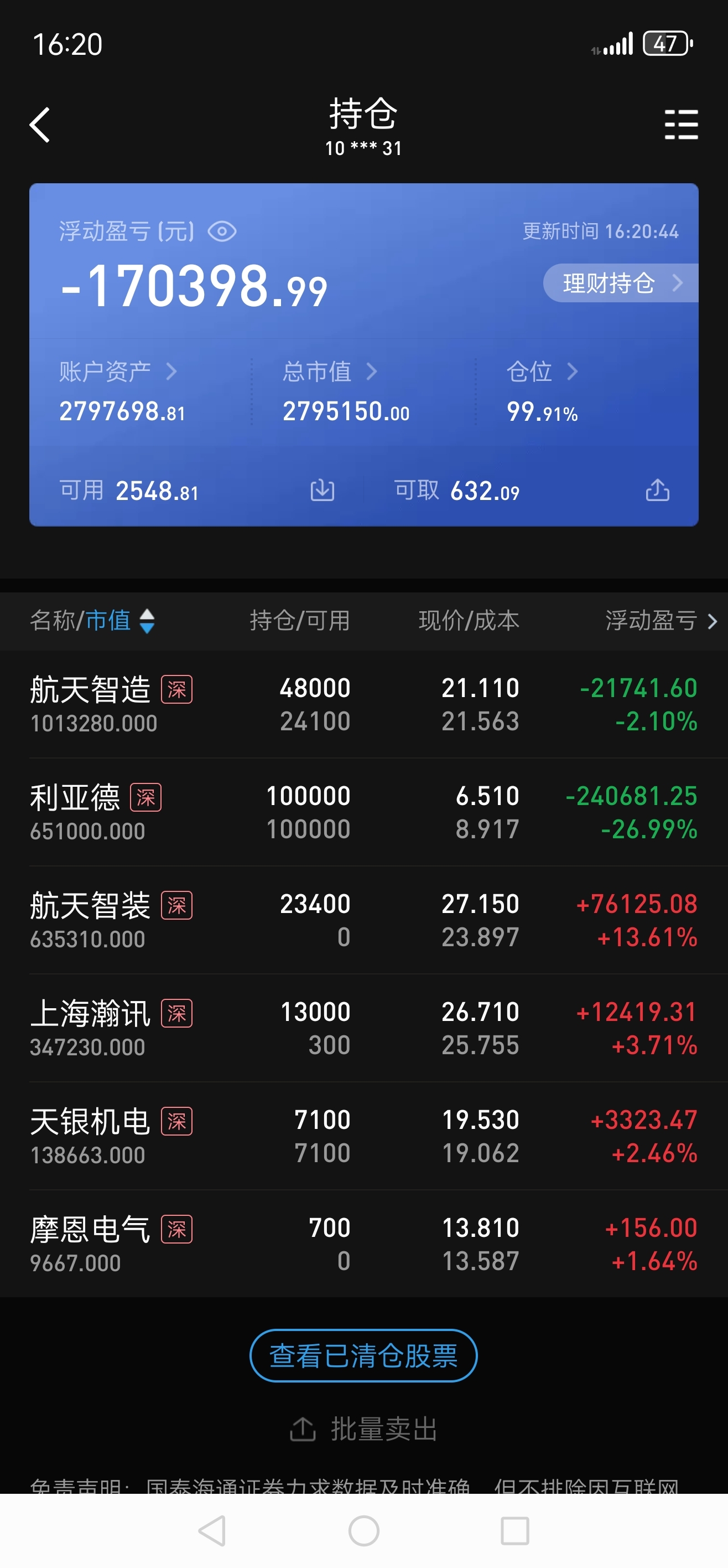 其中一个账户:今天割了利亚德,买了这些救回来9万,不容易