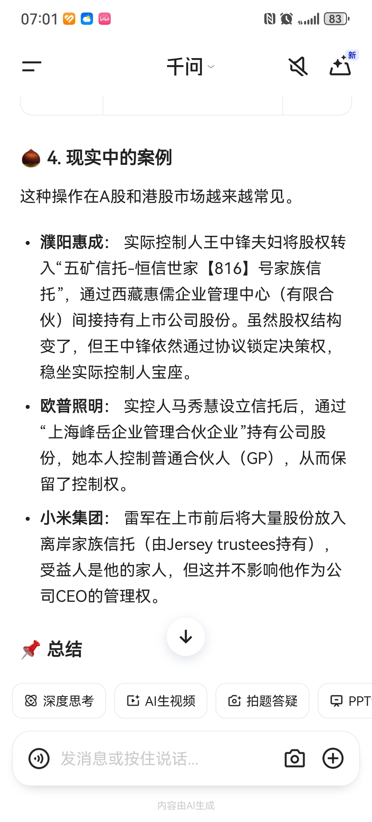 他通过这种“股权家族信托 + 有限合伙企业”的架构,既把家里的“金蛋”(股权)保护了起来,确保能传给子女,又把“金蛋”的“孵化权”(控制权)紧紧抓在自己手里,同时还隔离了个人风险。这是一种非常成熟和理性的长期资本运作手段。