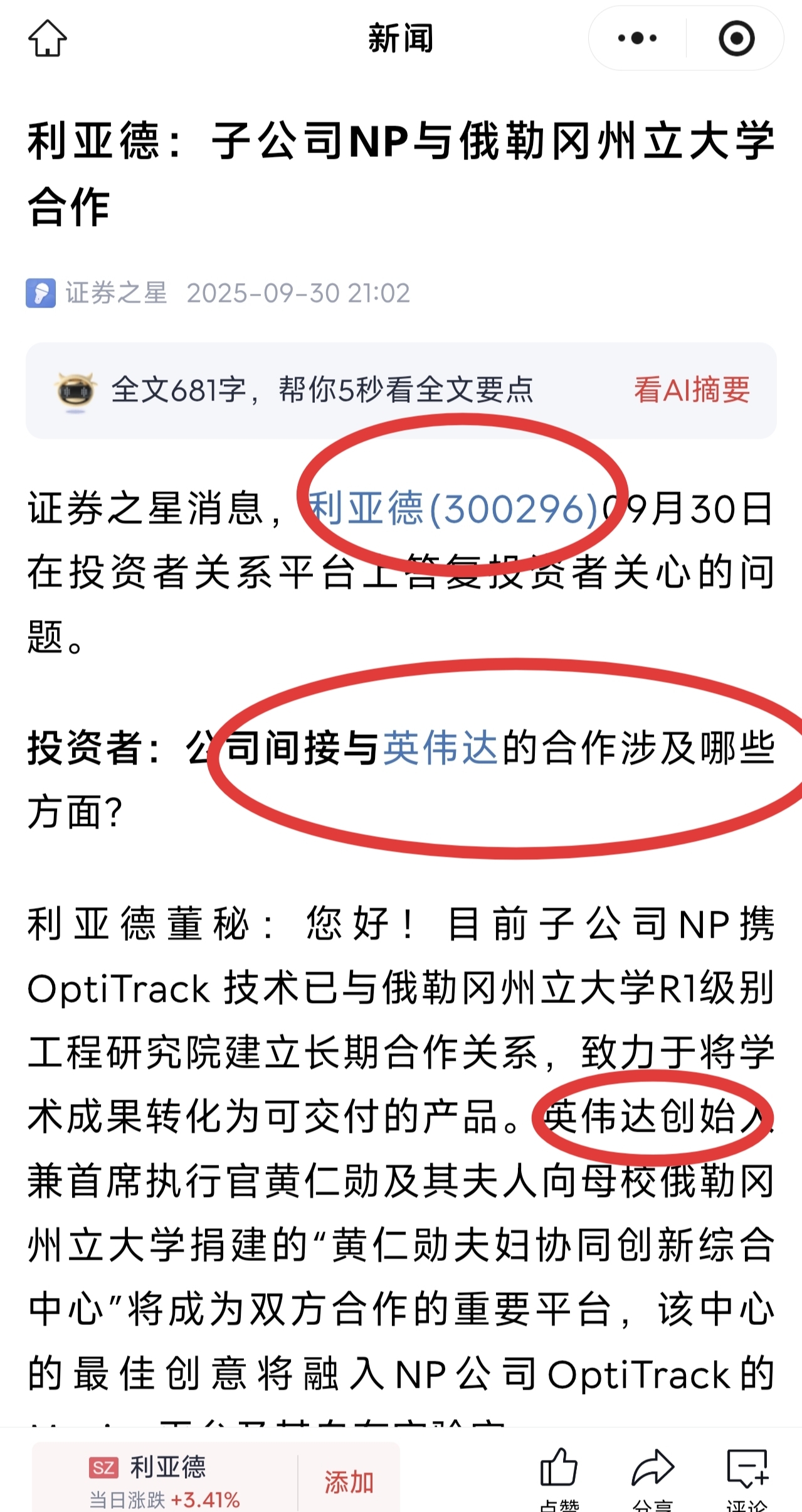 利亚德董秘回复OptiTrack在无人驾驶中的应用。利亚德这是实锤了有自动驾驶概念啊。$上证指数(SH000001)$ $北汽蓝谷(SH600733)$ 而且利亚德和英伟达的关系非常好,在俄勒冈州立大学设立了人工智能研究中心!