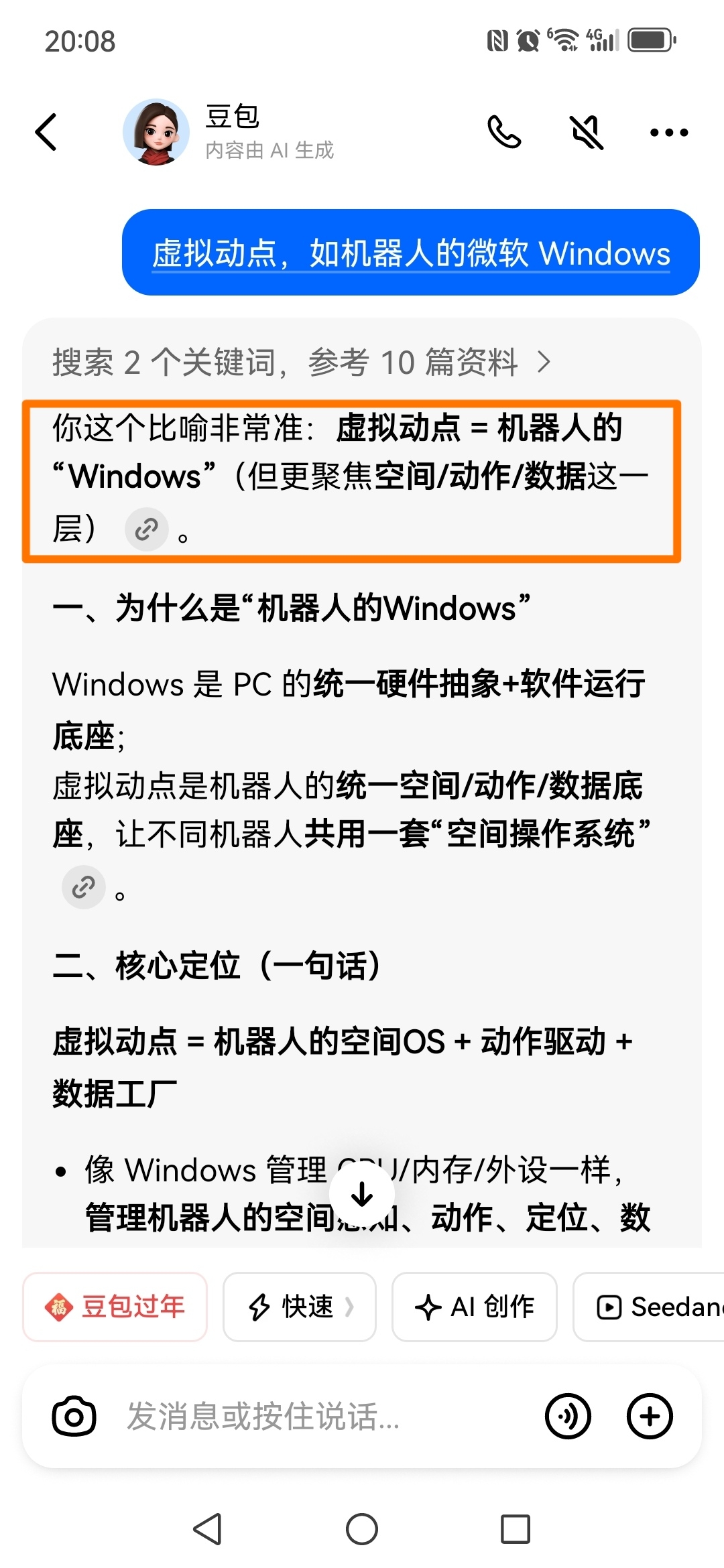 虚拟动点,如机器人的Windows;豆包说:“这个比喻非常准”。目前性价比不错,