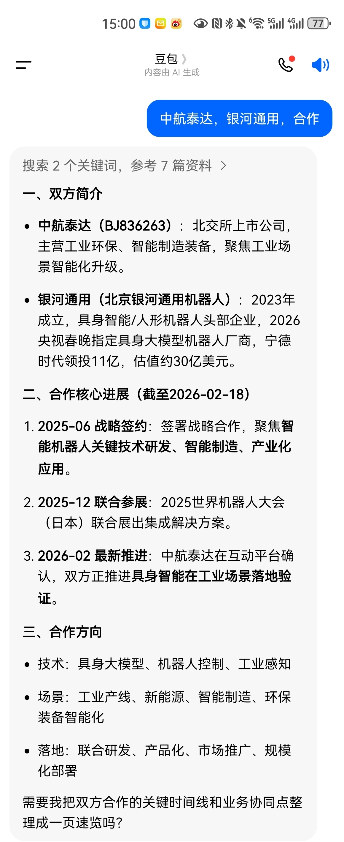 中航泰达是“银河通用+宇树科技”双概念股,已经落地合作了。信息捂的真严实,直到春
