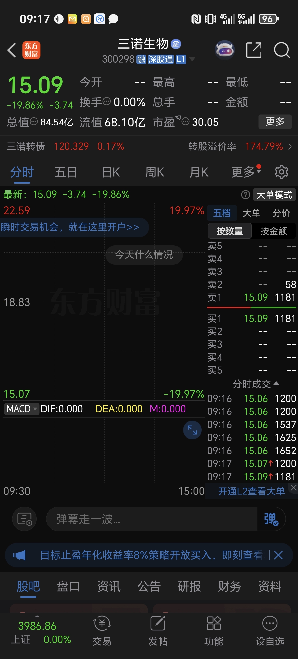 $三诺生物(SZ300298)$ 15,加仓500万,加加仓500万
