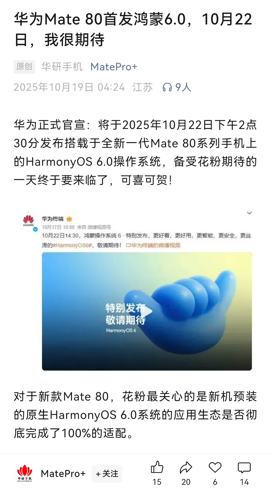 $鸿蒙概念(BK0953)$ 鸿蒙6.0与Mate 80即将登场,三诺生物深度协同迎来生态爆发契机