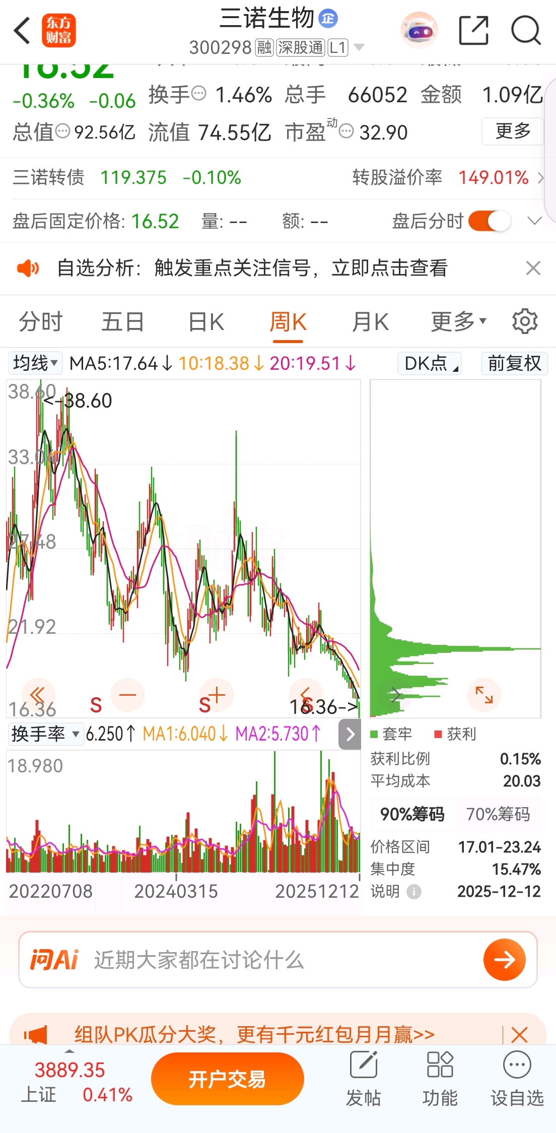 股价走势似乎印证了这一判断。从技术面看,三诺生物股价在16.52元附近震荡,低于MA5、MA10、MA20等主要均线,呈现明显的空头排列。