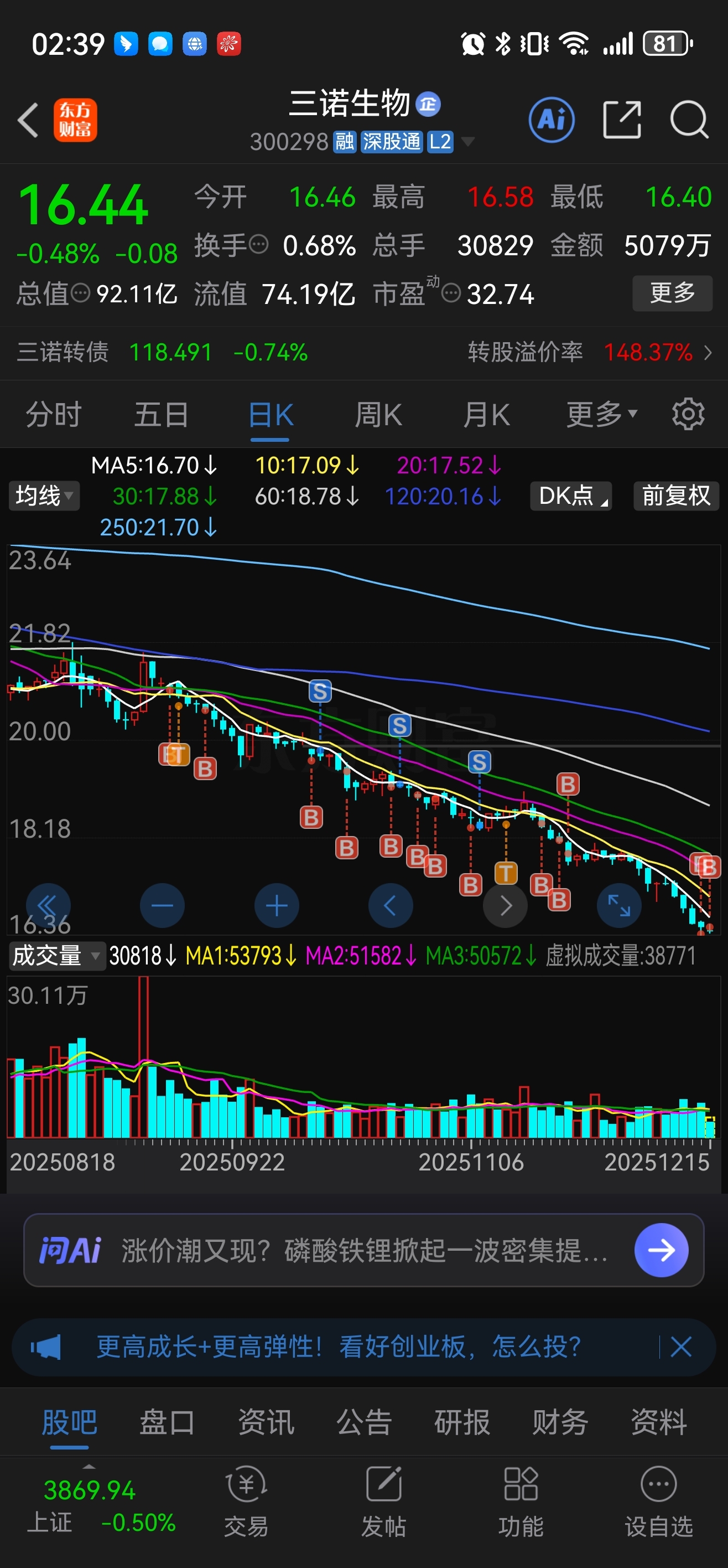 $三诺生物(SZ300298)$ 上周五加了3万呀今天加了5万,暂时不加了,再跌1块钱再加7万!!!