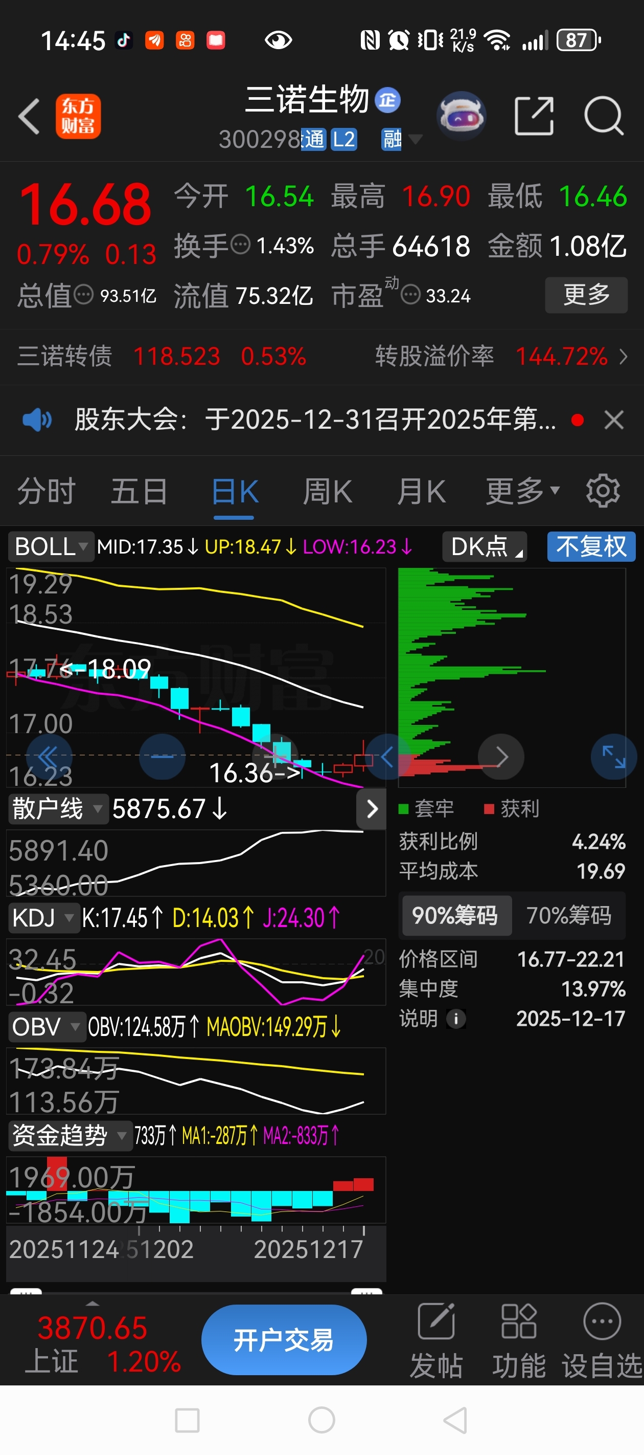 $三诺生物(SZ300298)$ 上方全是散韭菜的套牢盘!