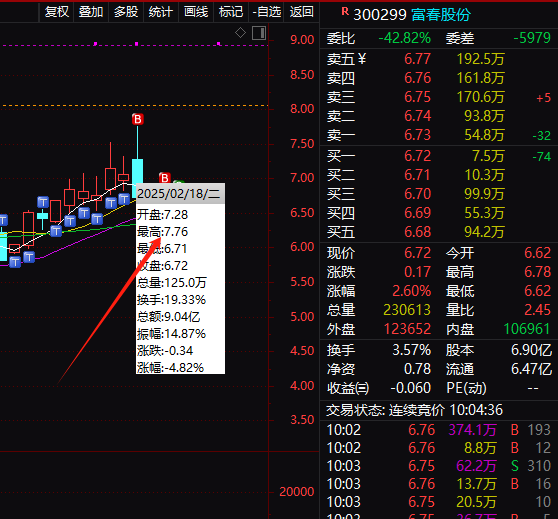 今天涨停价7.86,最高点下来都快跌二十厘米了!