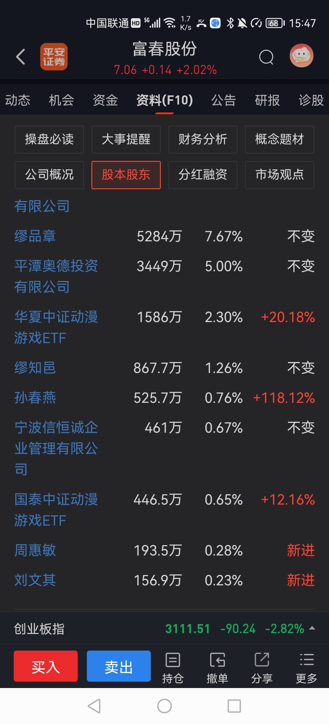 $富春股份(SZ300299)$ 看好的人多.新进了股东.没人减持.会涨