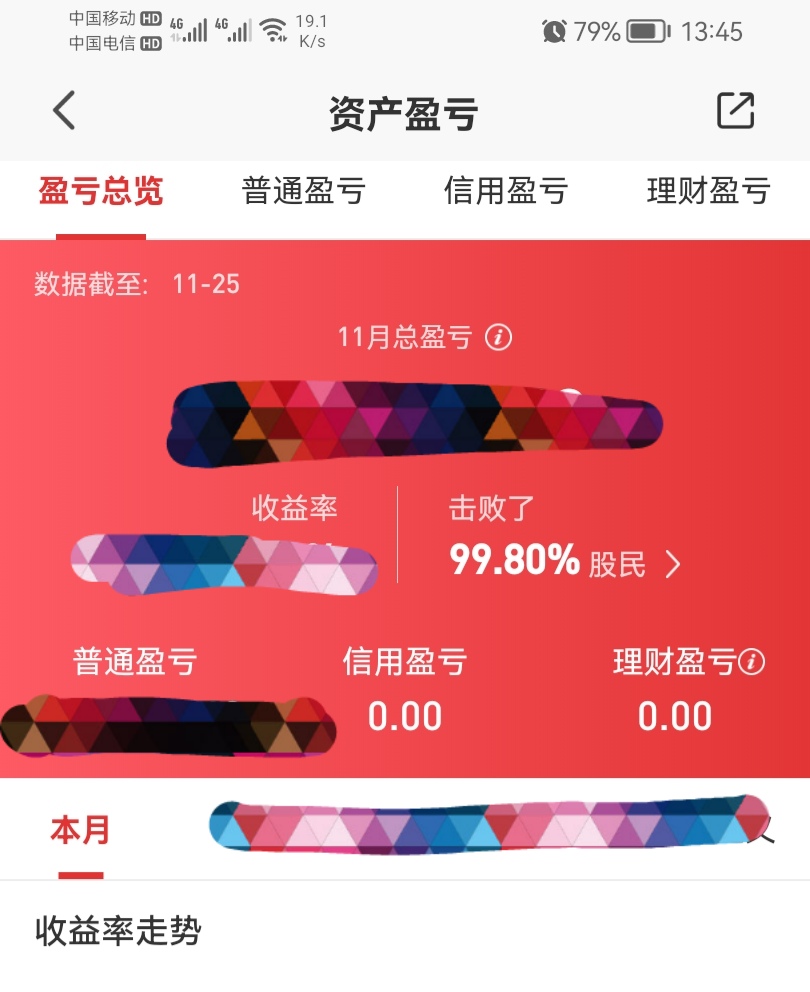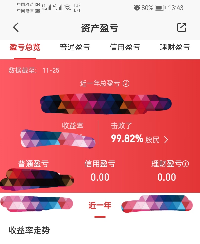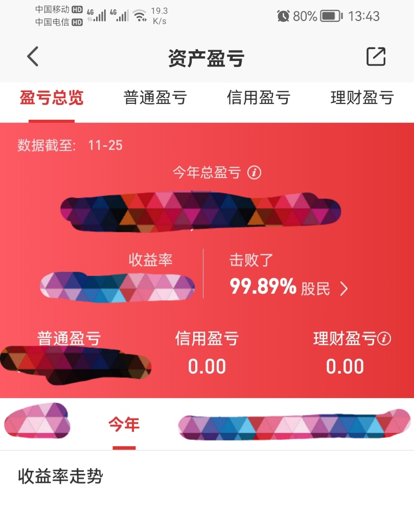 当月,今年,近一年,三科成绩都达到99.80%以上(打败了99.80%以上股民)