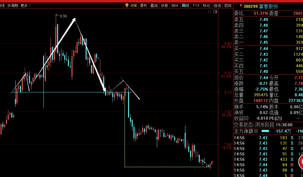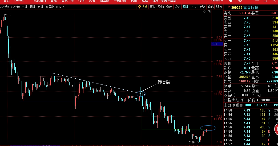 大沙春也是头肩顶,第一波7.4跌幅满足,放单7.35没成交…30分钟M头计算7.