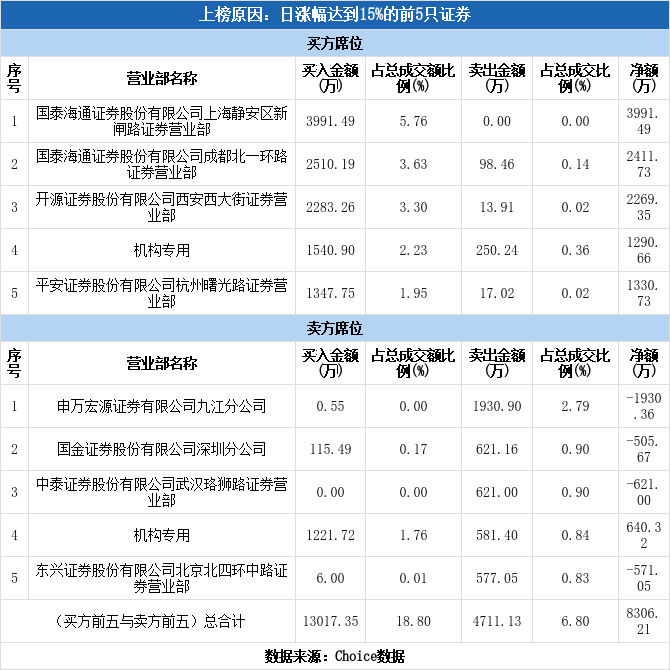 多主力现身龙虎榜,海峡创新涨停(10-17)