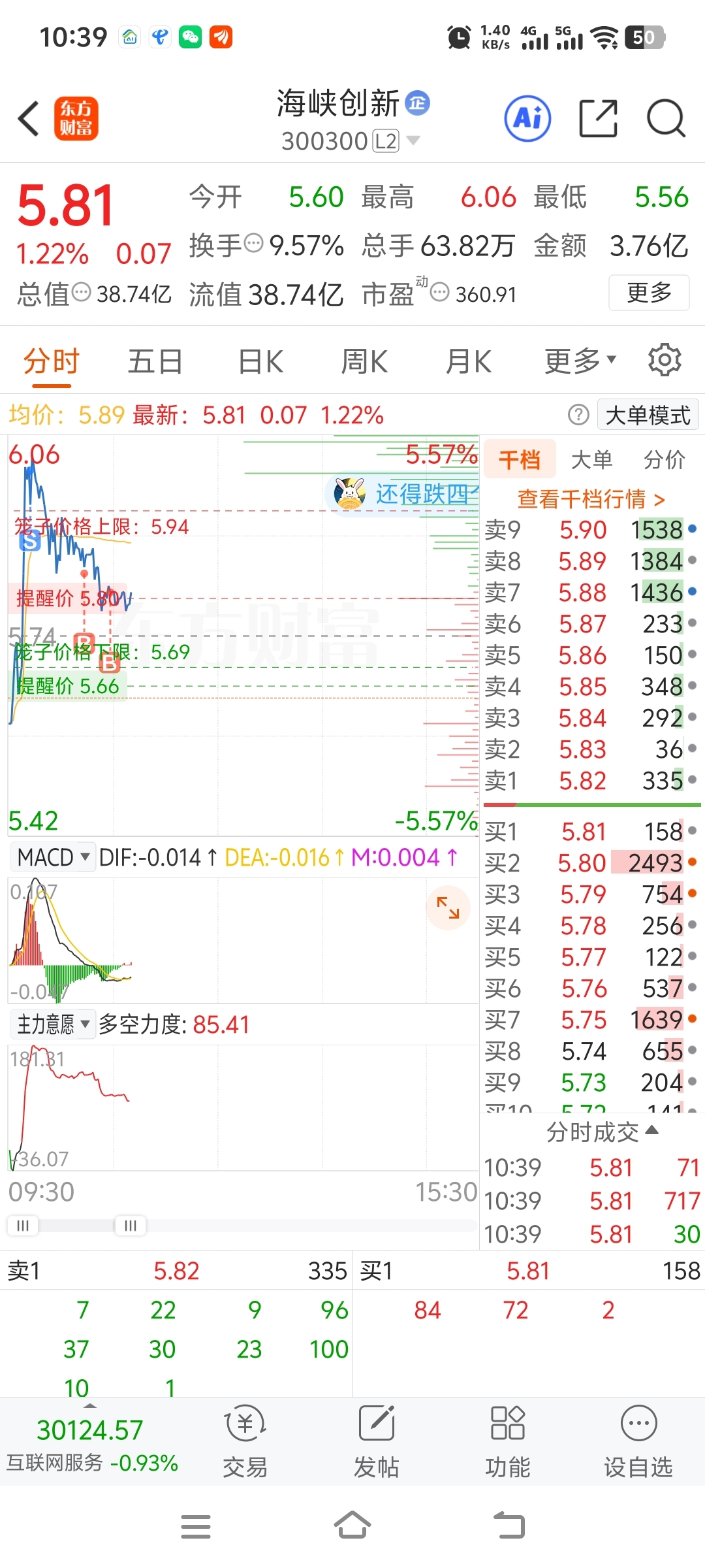 $海峡创新(SZ300300)$ 今天就这样哈