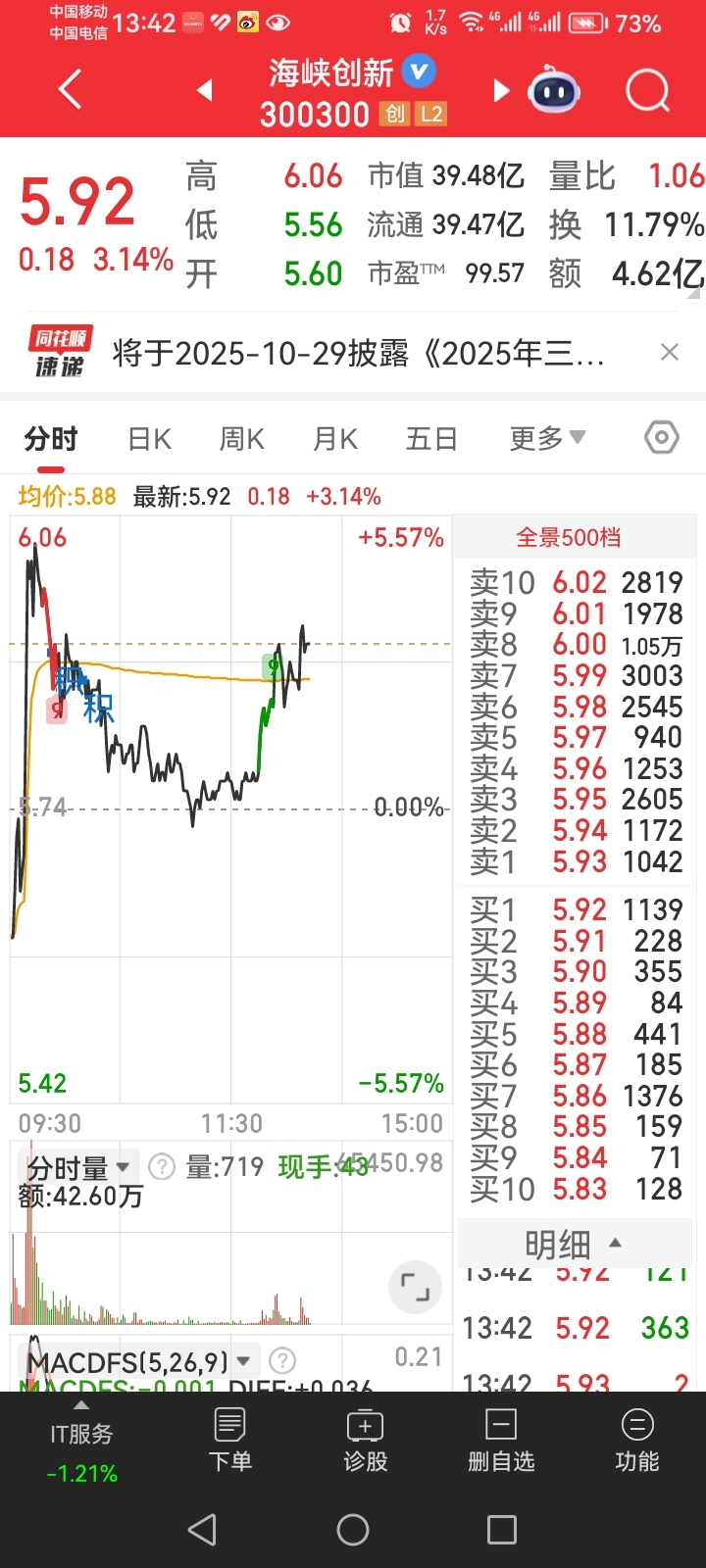 $海峡创新(SZ300300)$ $海峡创新(300300)$ 冲高跑或高抛做T,明天补跌低位低吸。