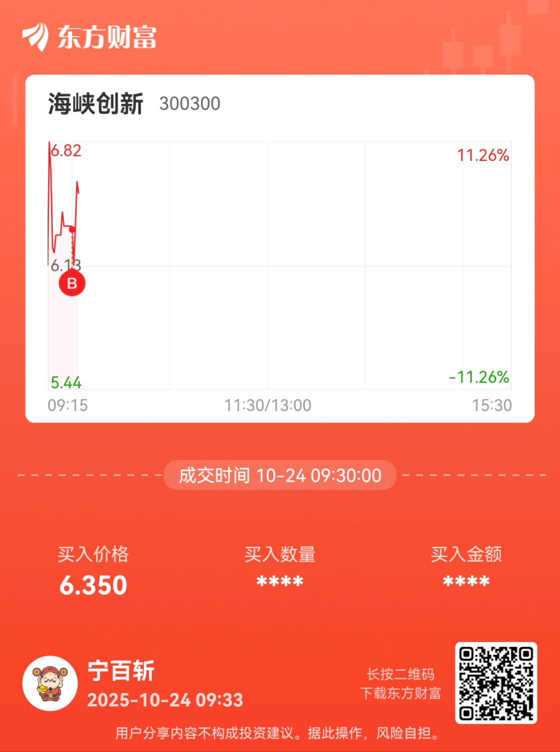 温馨提示: 1.根据《证券法》规定,禁止编造、传播虚假信息或者误导性信息,扰乱证券市场;2.用户在本社区发表的所有资料、言论等仅代表个人观点,与本网站立场无关,不对您构成任何投资建议。用户应基于自己的独立判断,自行决定证券投资并承担相应风险。《东方财富社区管理规定》