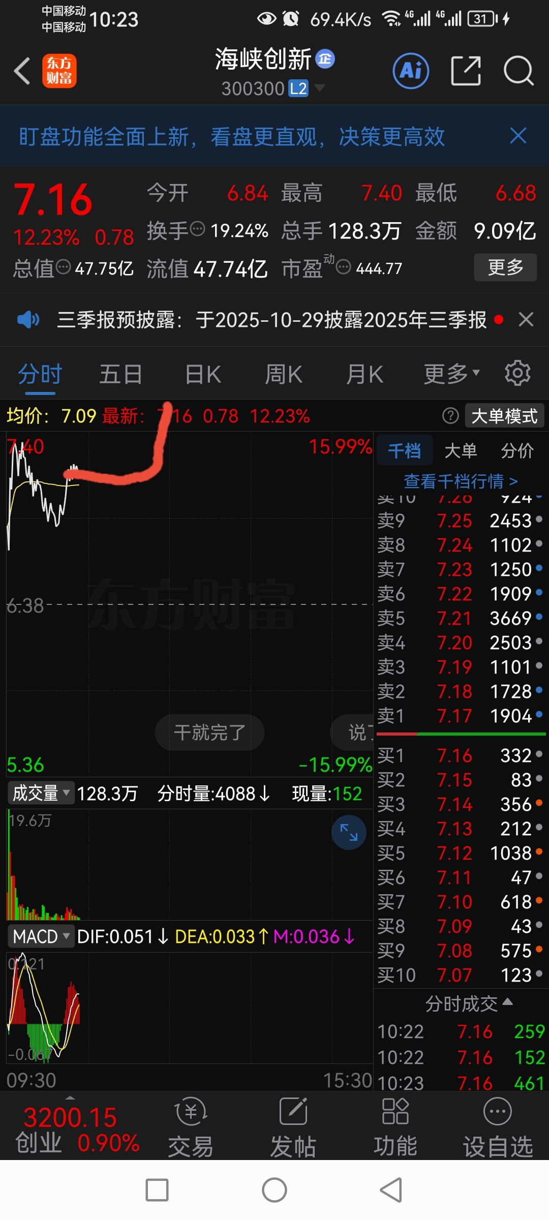 福建板块卷土重来,海峡创新量价配合良好已突破压力位有可能上午封板收市
