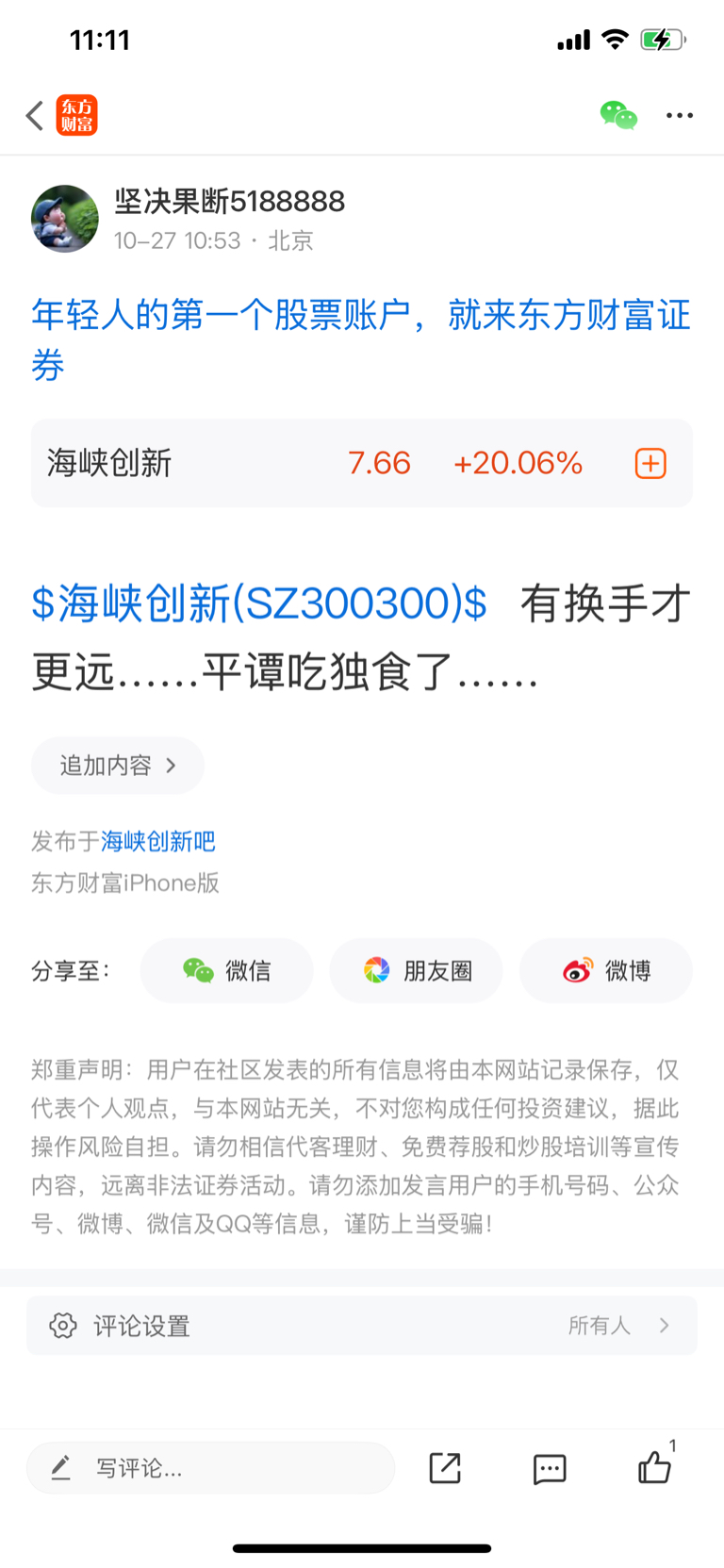 温馨提示: 1.根据《证券法》规定,禁止编造、传播虚假信息或者误导性信息,扰乱证券市场;2.用户在本社区发表的所有资料、言论等仅代表个人观点,与本网站立场无关,不对您构成任何投资建议。用户应基于自己的独立判断,自行决定证券投资并承担相应风险。《东方财富社区管理规定》