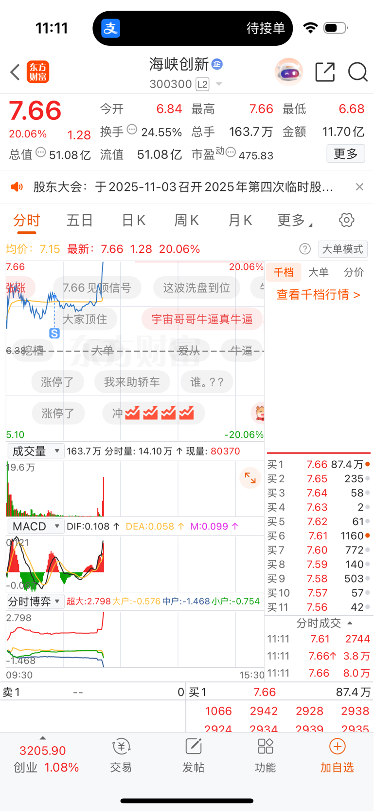 $海峡创新(SZ300300)$ 卖飞!25个点收益,唉再等一会儿多好