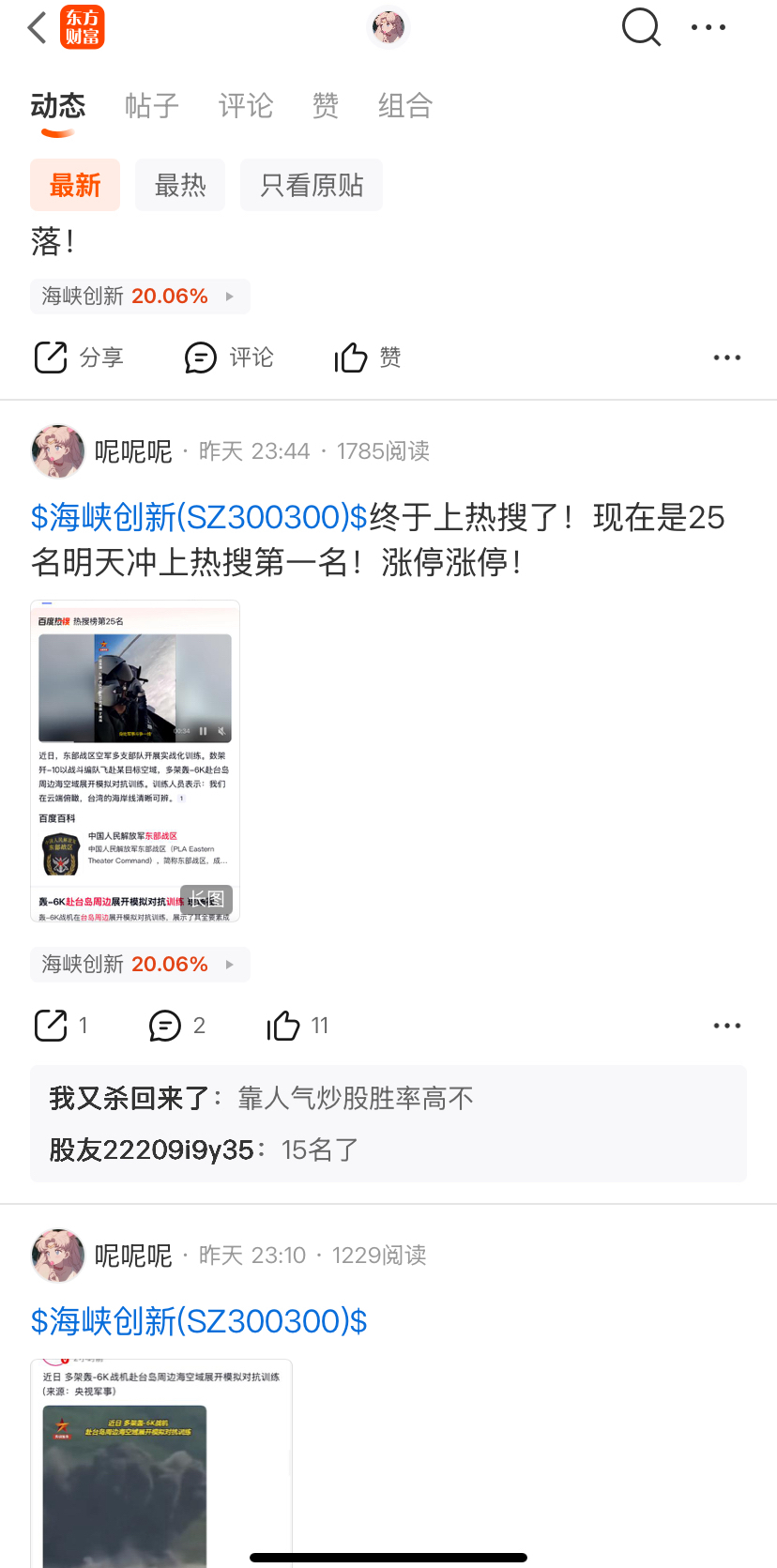 $海峡创新(SZ300300)$ 昨天这个热搜一上就感觉今天大概会涨停!国家情怀啊!希望再来两个涨停!