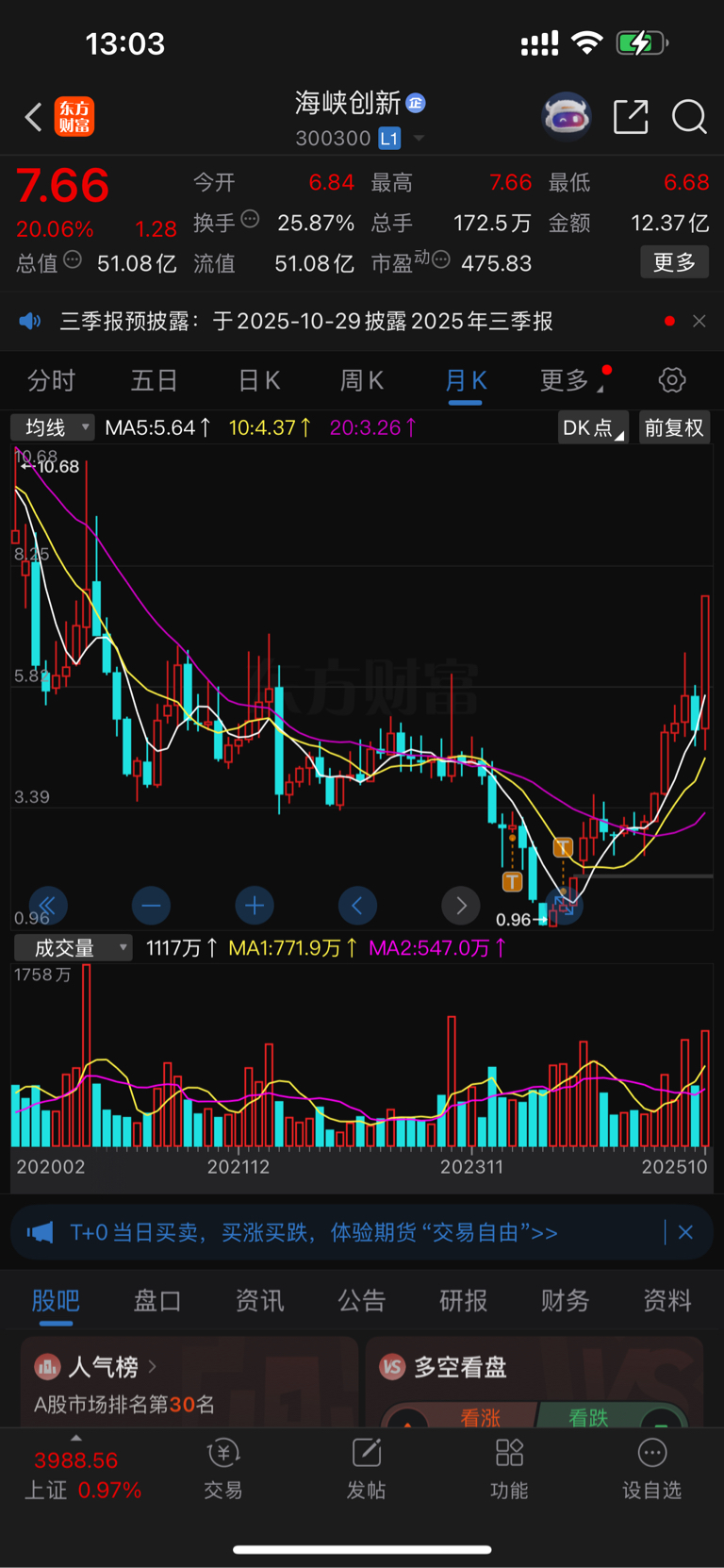 $海峡创新(SZ300300)$ 能涨到哪里呢