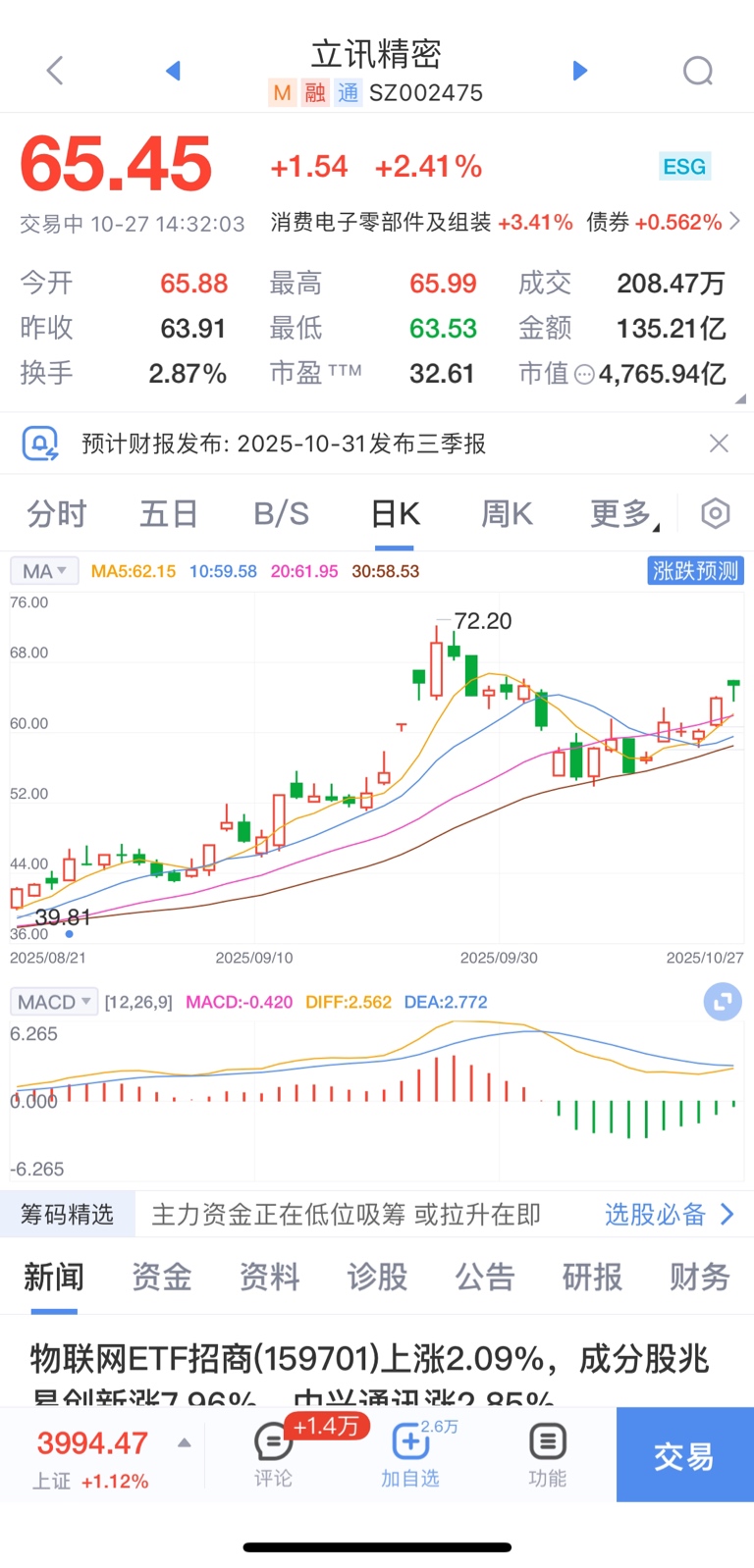 $立讯精密(SZ002475)$早盘来不及撤的朋友,尾高位撤