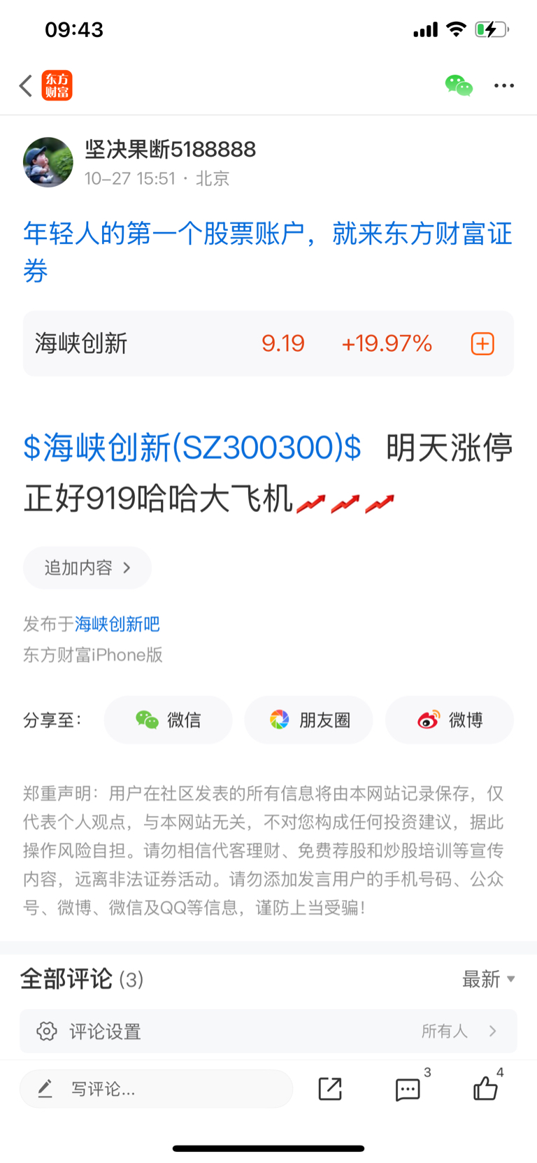 温馨提示: 1.根据《证券法》规定,禁止编造、传播虚假信息或者误导性信息,扰乱证券市场;2.用户在本社区发表的所有资料、言论等仅代表个人观点,与本网站立场无关,不对您构成任何投资建议。用户应基于自己的独立判断,自行决定证券投资并承担相应风险。《东方财富社区管理规定》