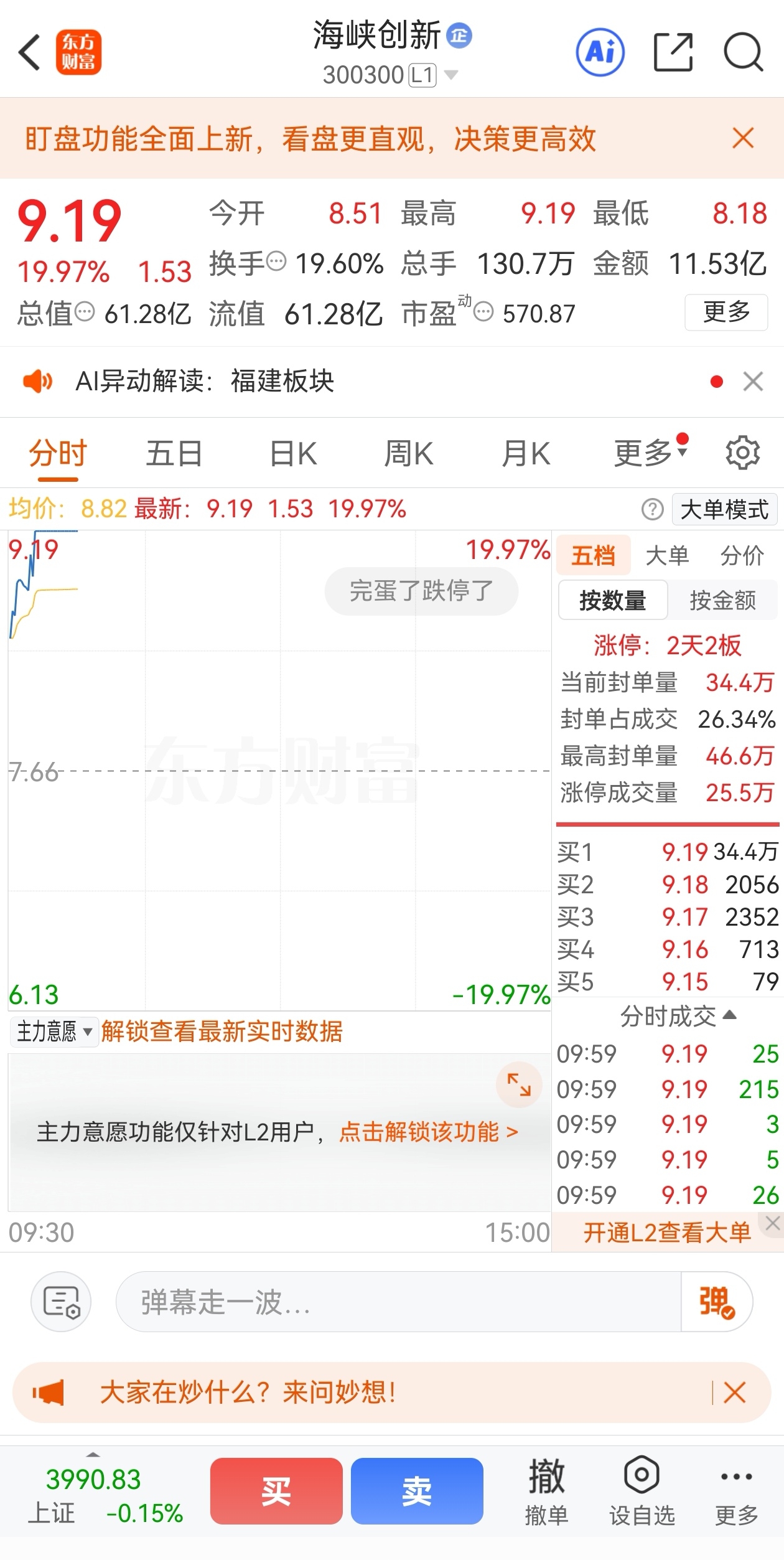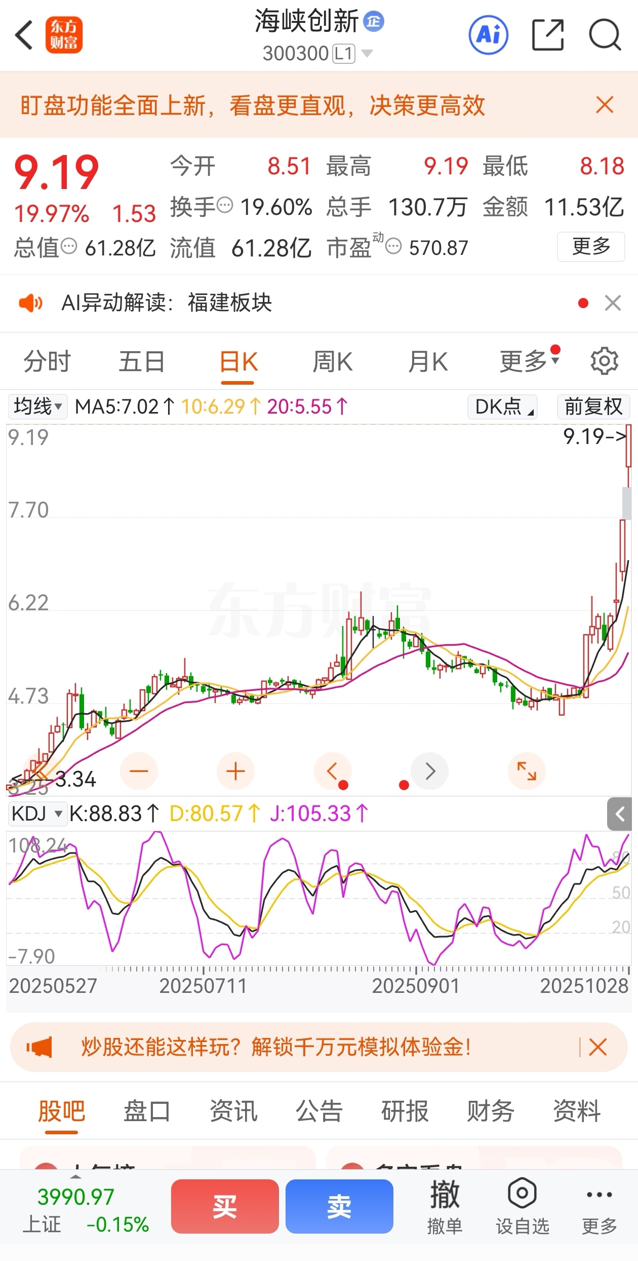 $海峡创新(SZ300300)$ $天奇股份(SZ002009)$ $旋极信息(SZ300324)$ 海峡创新最磨人的阶段即5元多洗盘时,我一直告诉所有人,坚持坚持坚持!现在连续20CM涨停板,9元多马上翻倍了,大家开心吗?