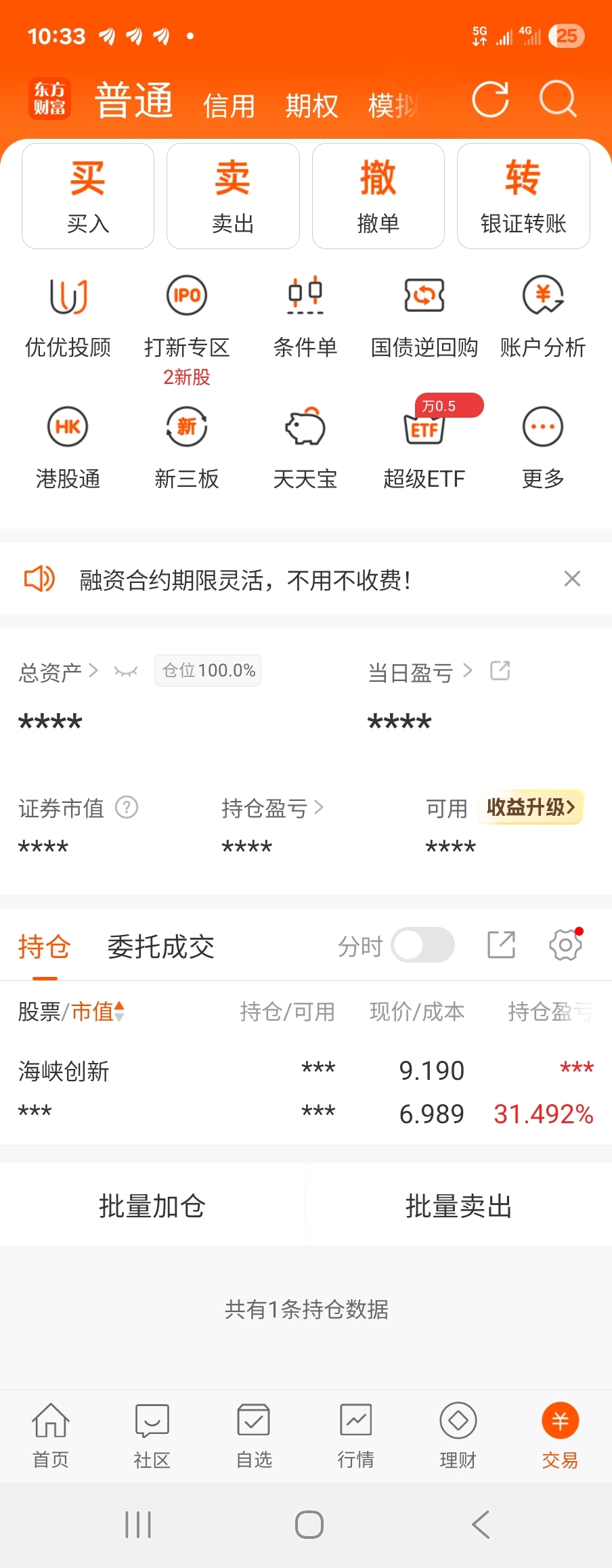 已全仓,再有3个涨停才能回本,就看你了