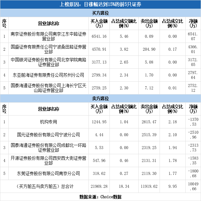 机构现身龙虎榜,海峡创新涨停(10-28)