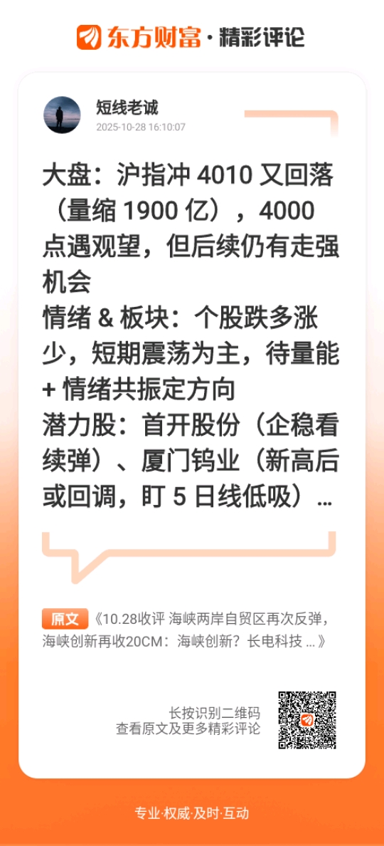 昨晚美股三大指数全线反弹,看过我就知道今天A股还要继续向上反弹,突破4000点是肯定的,而且昨天盘后还公布了一系列的利好,但是今天早盘开盘三大指数竟然全部低开,这里就是有点说法,我的理解就是洗盘,所以今天早盘出局的很多人估计还是比较后悔的,从大盘角度来看,今天指数虽然反弹了,但是量能却缩小了1900多亿,这里其实不难理解,大家不太清楚4000点和3900点的区别,毕竟他们走得非常类似,所以今天很多人还是在继续观望,下午再次回落,更加验证这种想法,虽然整体今天不强,但是和之前类似,那么接下来还能继续走强,如果后面指数继续走强,那么他们将跑步进场。
