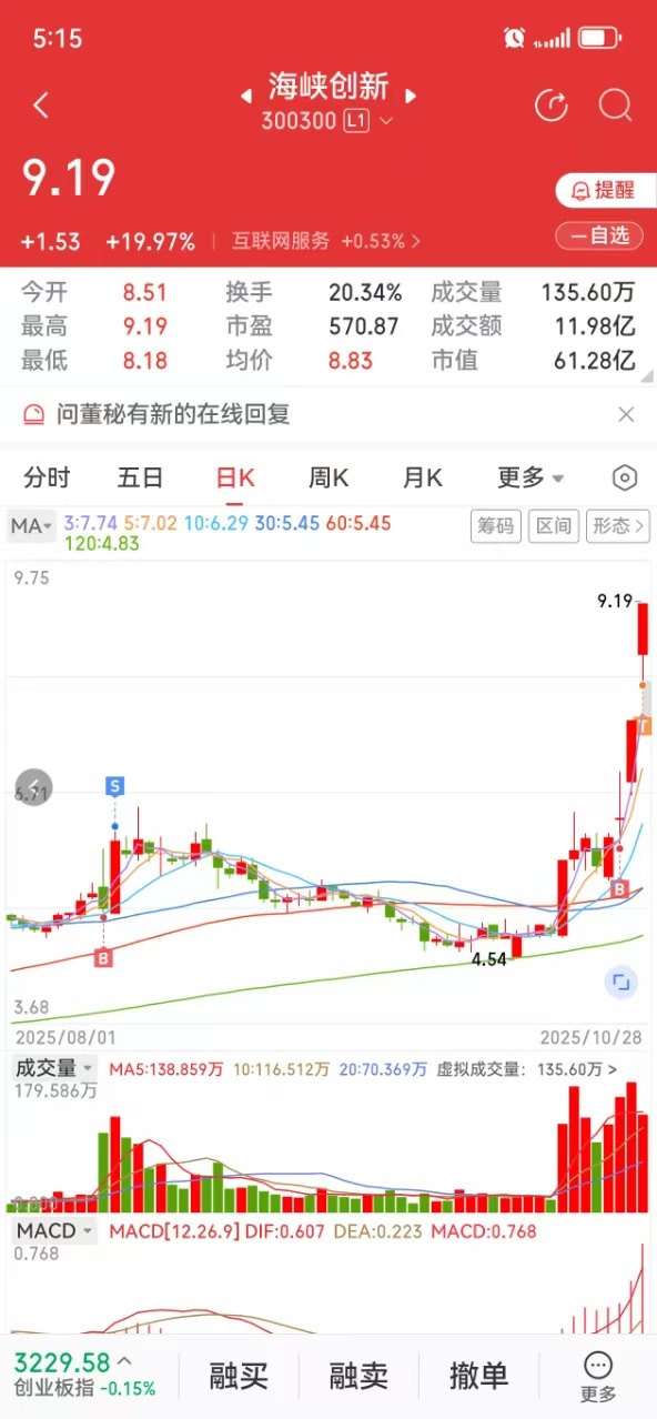 $海峡创新(SZ300300)$ 龙抬头竞价首板王战法: 做股票不要追高更不要打板,想实现稳定复利就要做低位竞价首板,龙抬头竞价首板王选股软件,开盘前竞价选股不做马后炮,买在低位3个点左右,博当天或者次日溢价甚至首板涨停!龙抬头竞价首板王专门抓20厘米首板涨停!