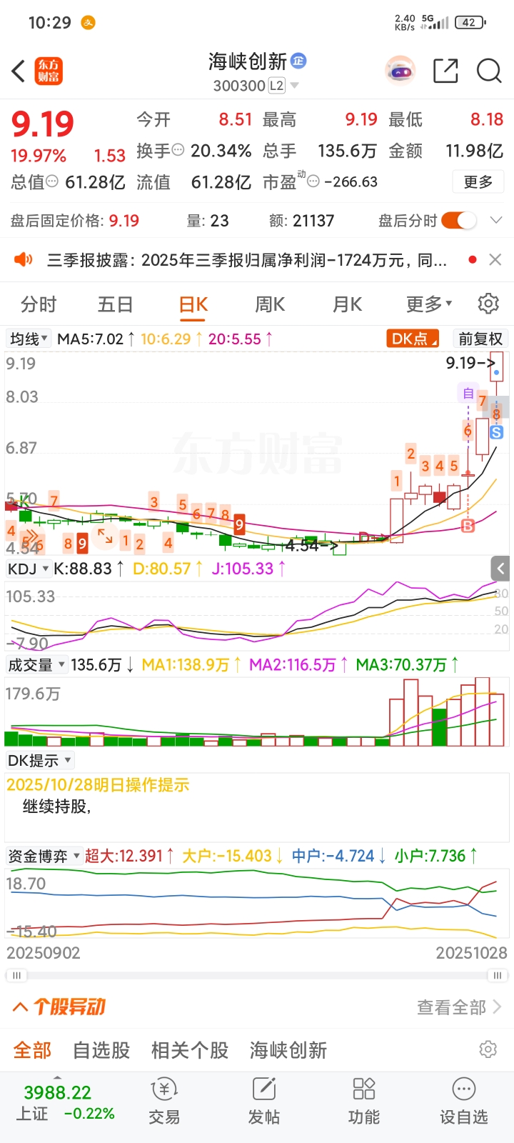 $海峡创新(SZ300300)$ 走早了,留下的发财