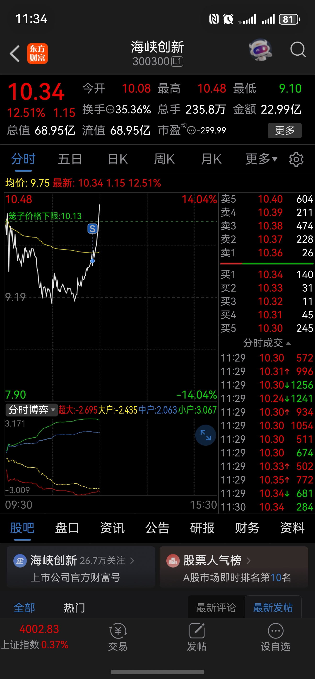 $海峡创新(SZ300300)$ 卖飞了服了!