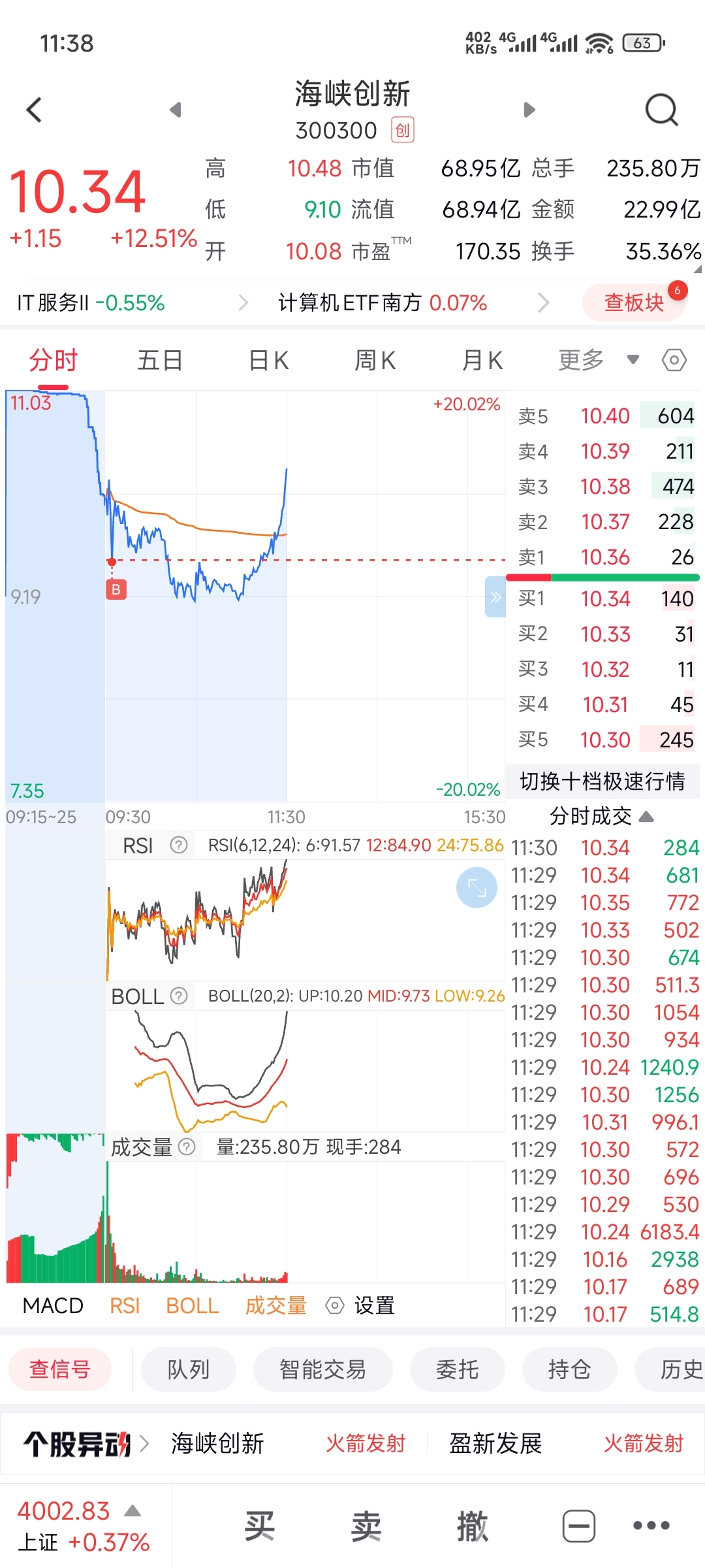 $海峡创新(SZ300300)$ 今天换手第一版,明天继续一字板走起,第一波9.81加的,第二波委托的9元,差一毛,他么的气人!一点准时封板!