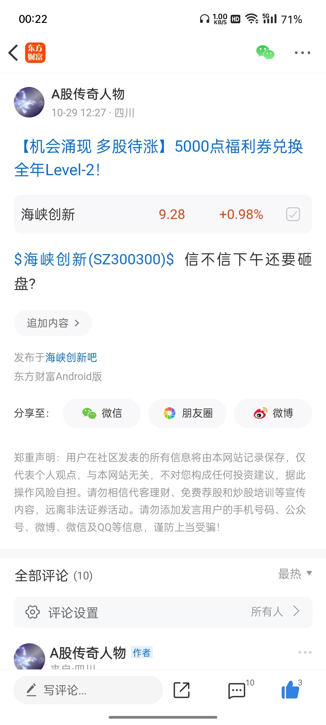 温馨提示: 1.根据《证券法》规定,禁止编造、传播虚假信息或者误导性信息,扰乱证券市场;2.用户在本社区发表的所有资料、言论等仅代表个人观点,与本网站立场无关,不对您构成任何投资建议。用户应基于自己的独立判断,自行决定证券投资并承担相应风险。《东方财富社区管理规定》