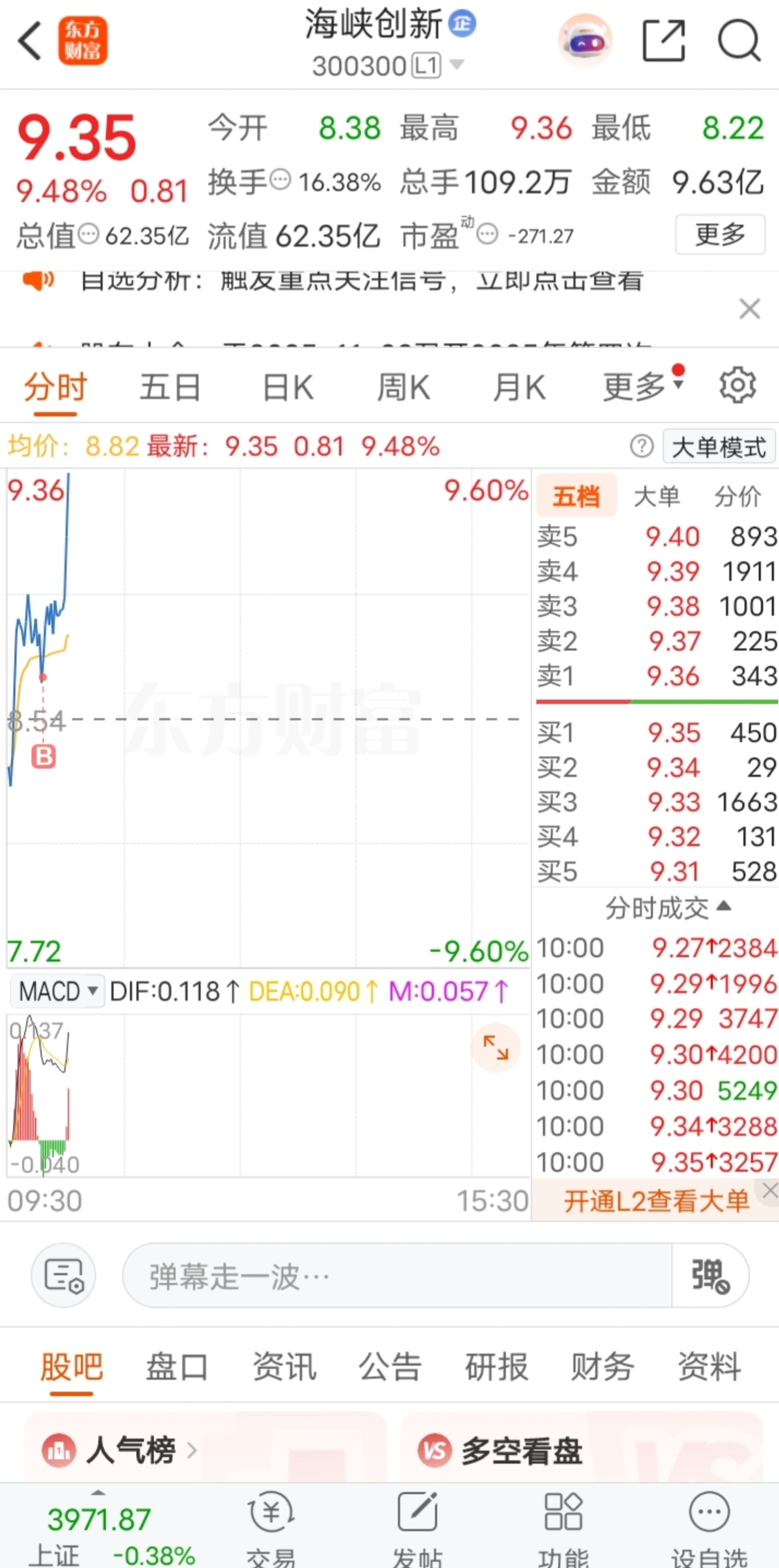 早盘继续介入了个股$海峡创新(SZ300300)$