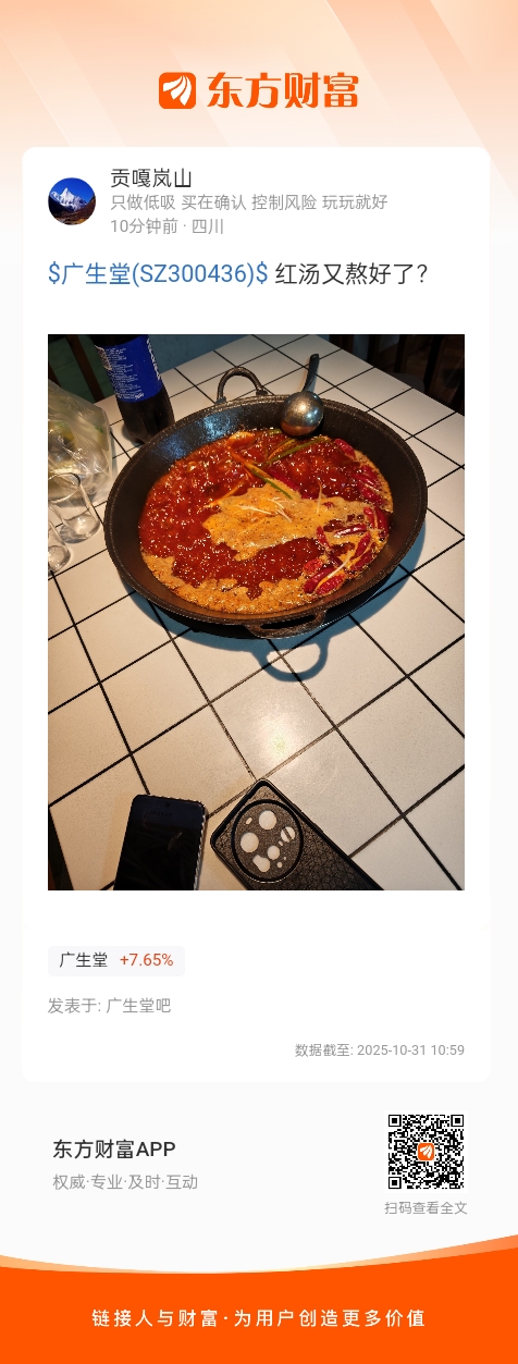 温馨提示: 1.根据《证券法》规定,禁止编造、传播虚假信息或者误导性信息,扰乱证券市场;2.用户在本社区发表的所有资料、言论等仅代表个人观点,与本网站立场无关,不对您构成任何投资建议。用户应基于自己的独立判断,自行决定证券投资并承担相应风险。《东方财富社区管理规定》