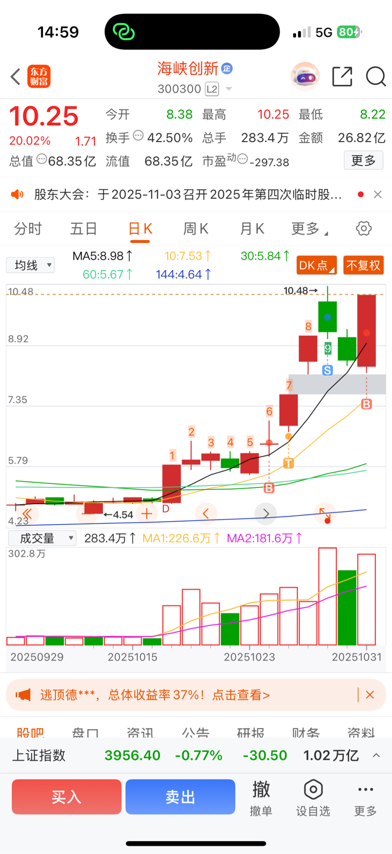 $海峡创新(SZ300300)$ 没敢满仓重仓干,胆子小了,没有家国情怀