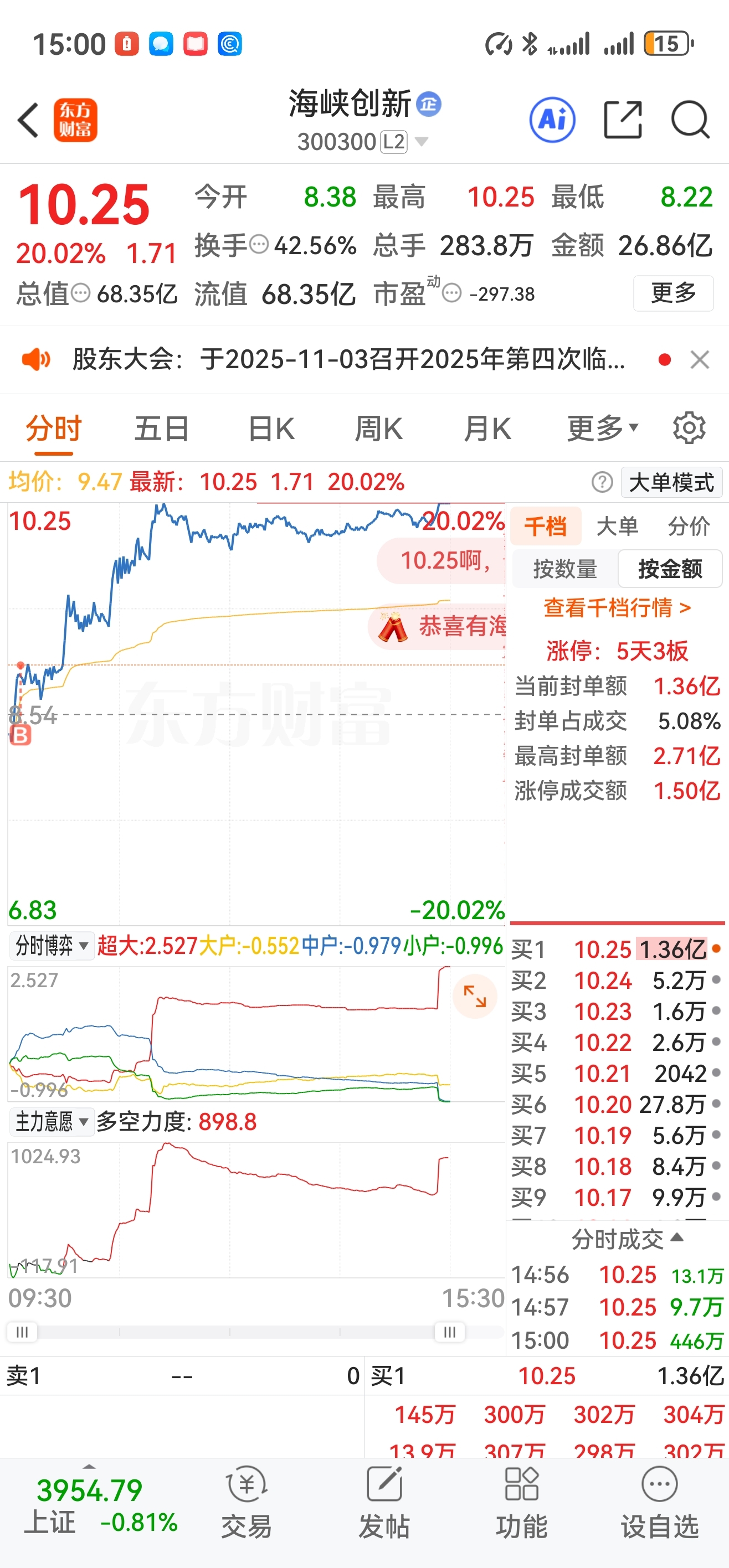 $海峡创新(SZ300300)$ #强势机会# 运气这么好吃肉了