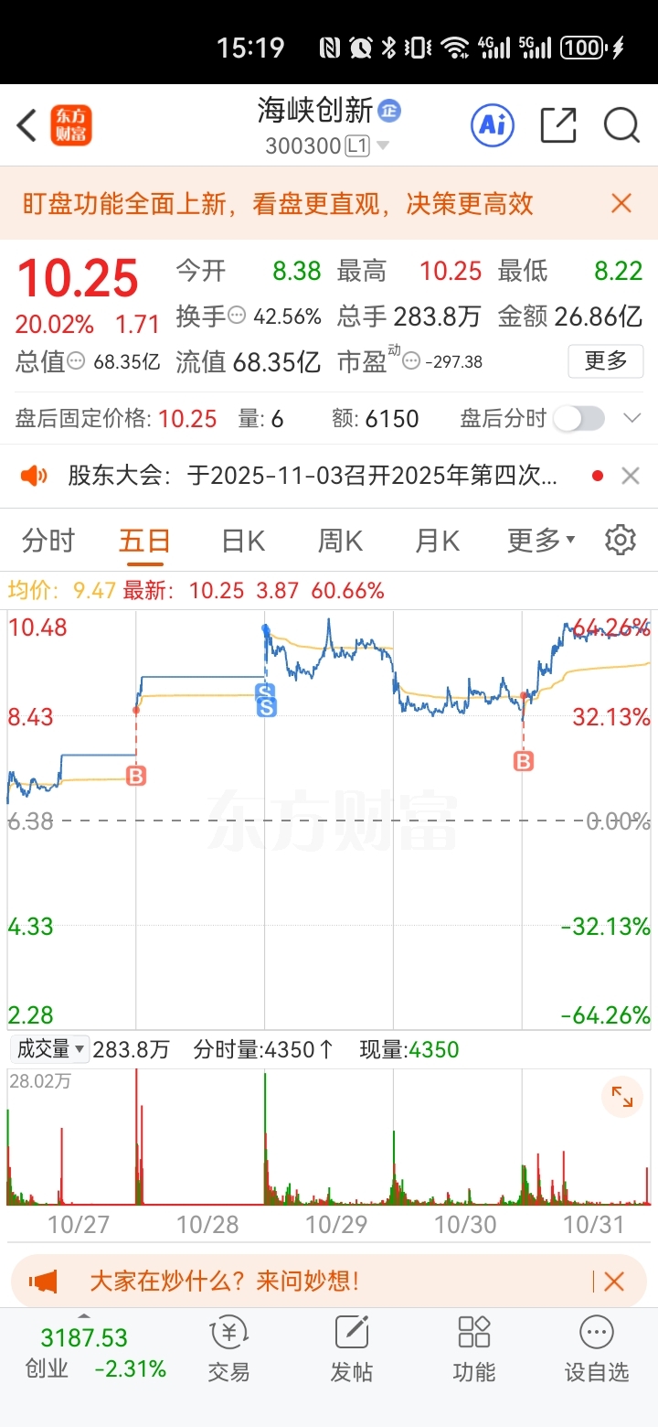 $海峡创新(SZ300300)$ ,两次操作,50个点,周一还有10个点溢价,美滋滋