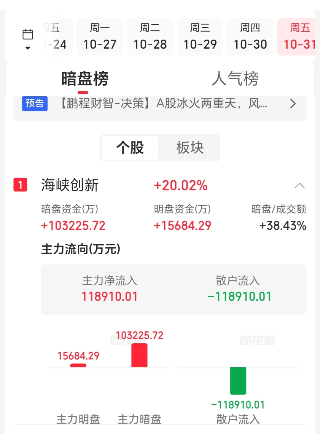 $海峡创新(SZ300300)$ 分享暗盘资金,再结合龙虎榜,周一该如何?欢迎各位大师点评一下!是↑还是↓