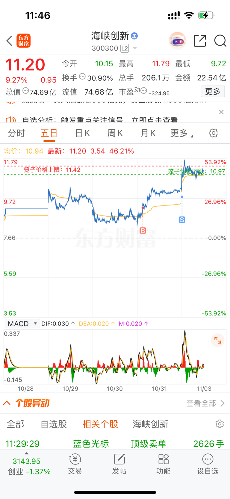 $海峡创新(SZ300300)$ 蚊子肉也是肉,不追了