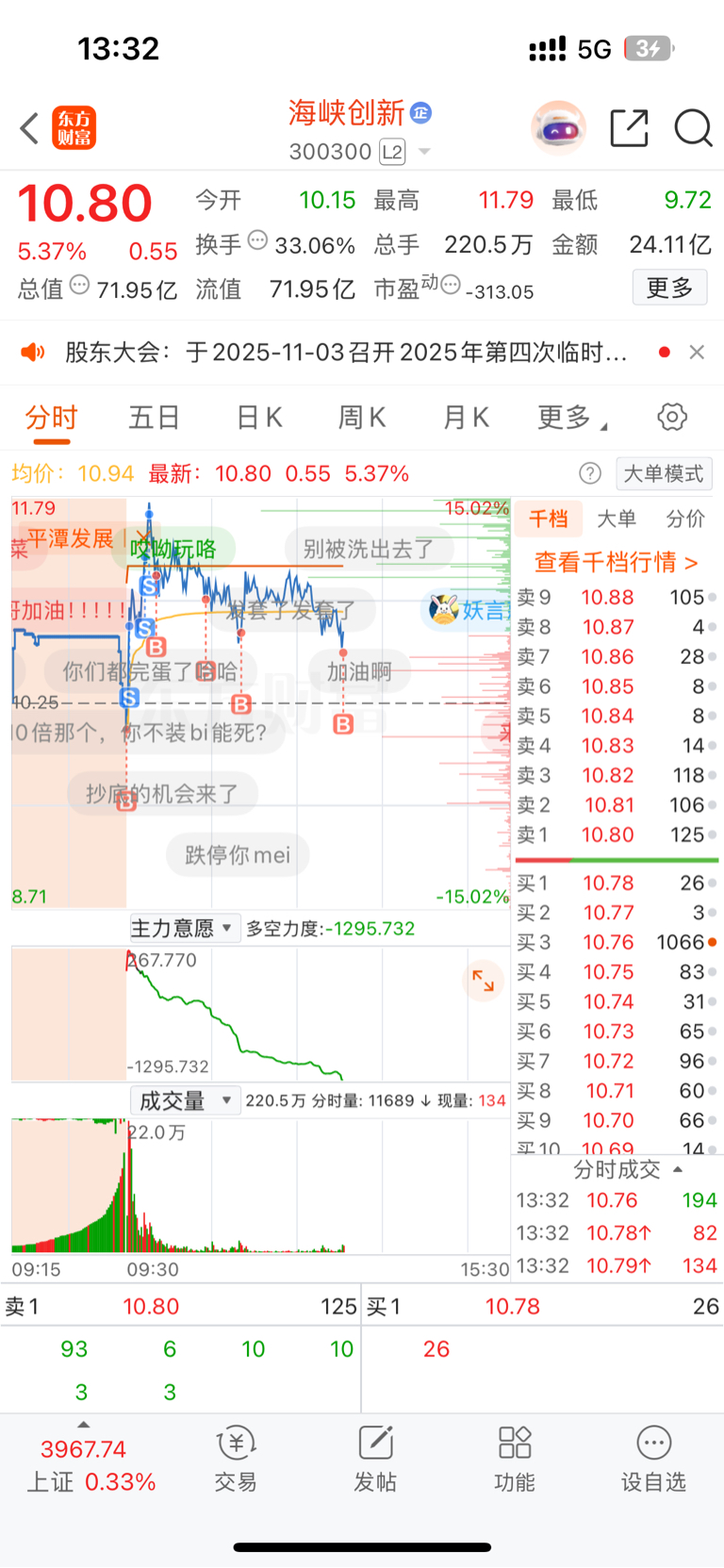 $海峡创新(SZ300300)$ 顶上清仓,慢慢买回来走势还算健康,有点分歧。