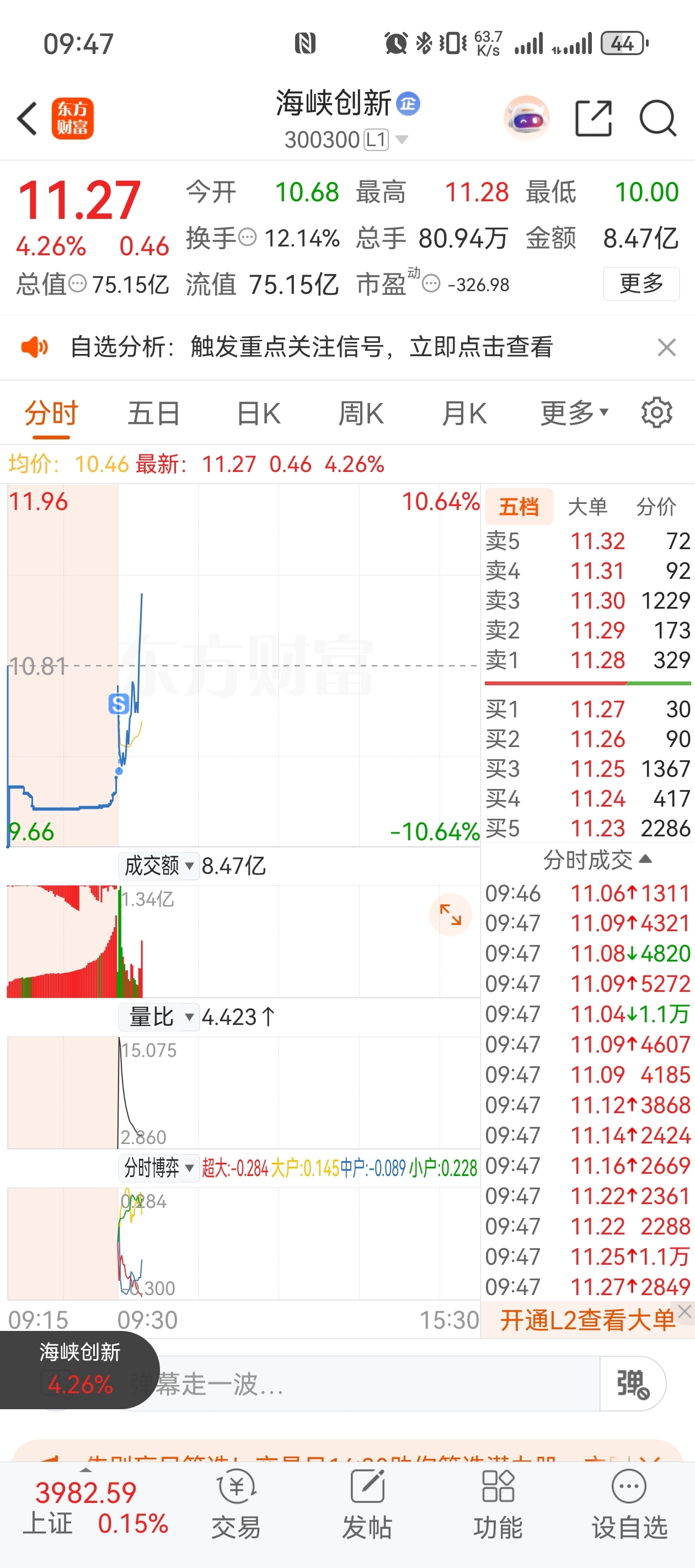 $海峡创新(SZ300300)$ 无语死了,割肉10个点卖了你去追高的百诚医药,哈哈哈哈,我真是