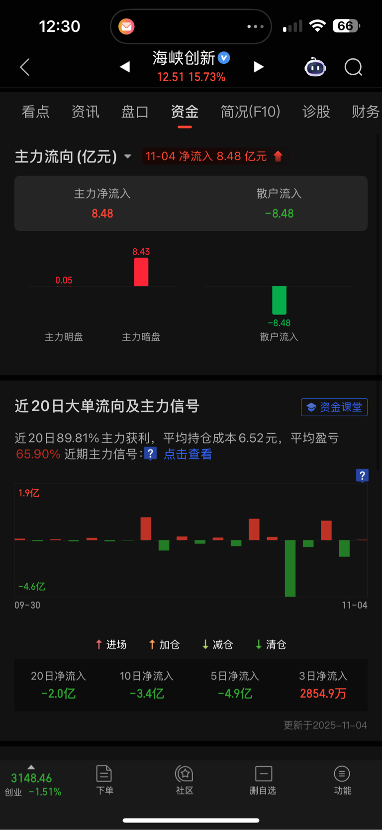$海峡创新(SZ300300)$ 主力进了8.48亿,散户跑了8.48亿,这是干嘛,吸血吗