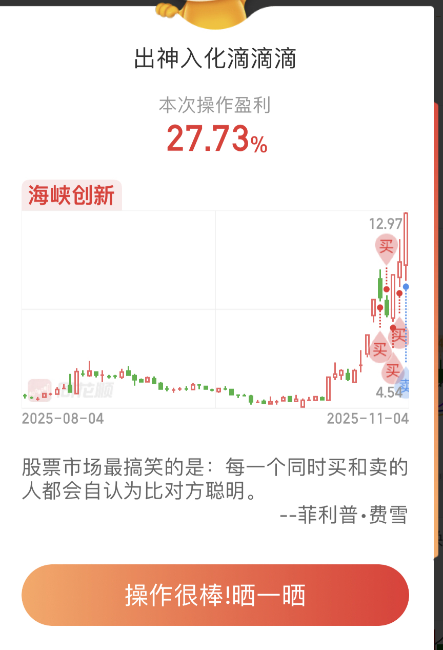 $海峡创新(SZ300300)$ 顶不住兄弟们,我先走了。希望明天还让我进来
