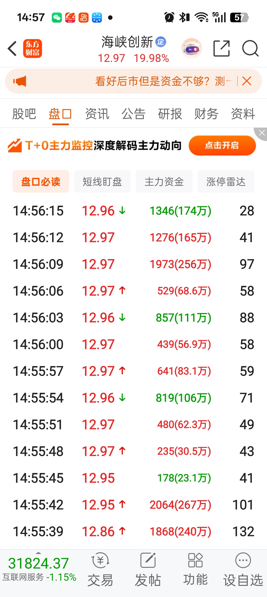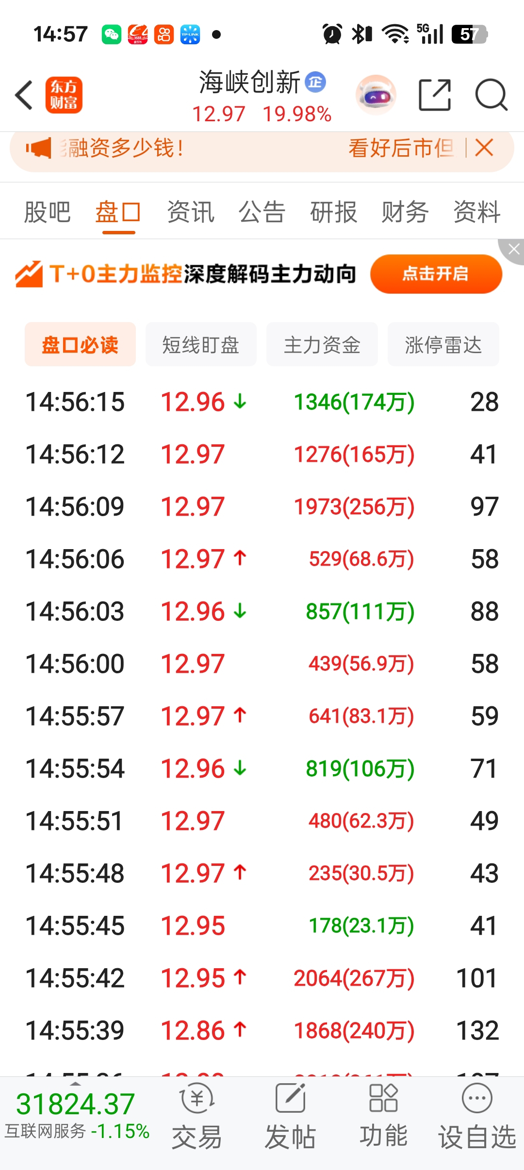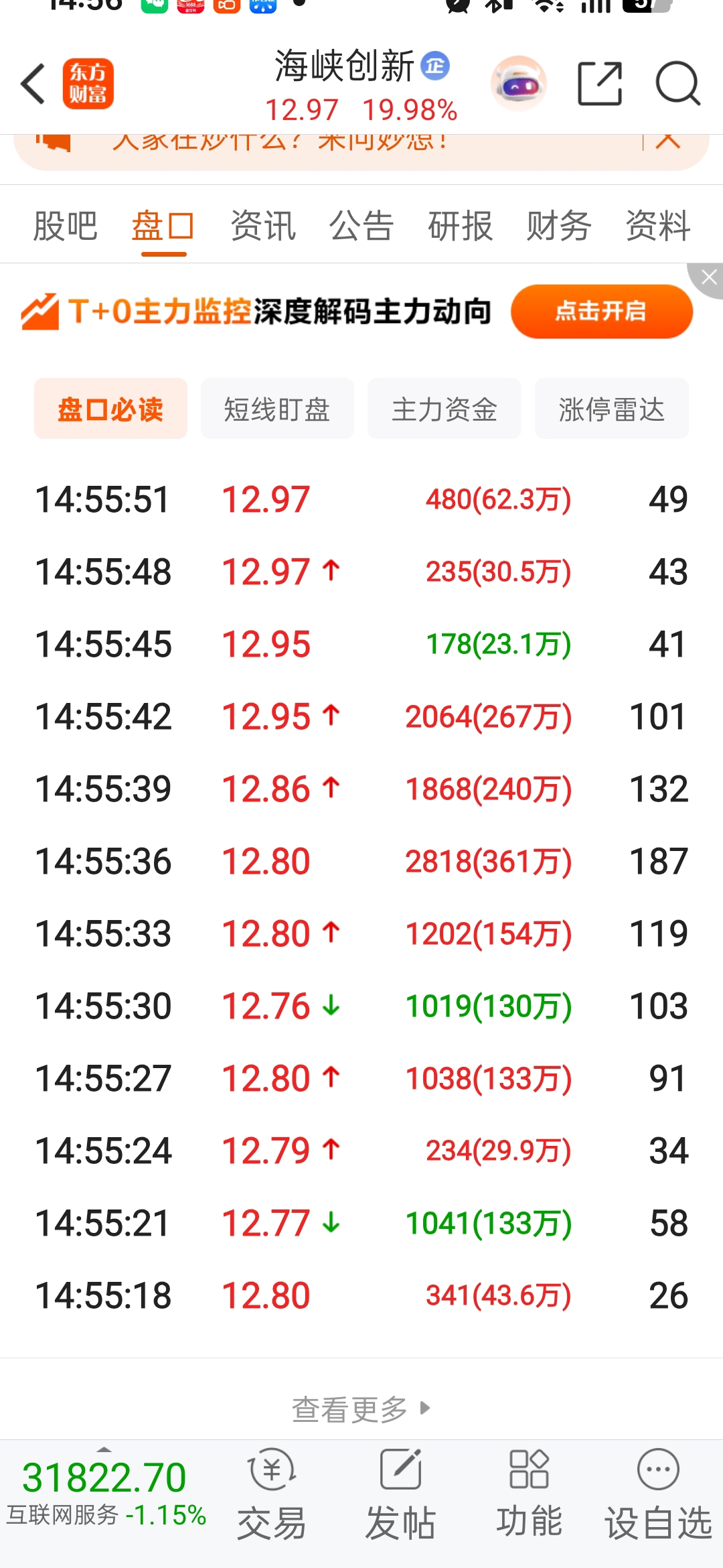 $海峡创新(SZ300300)$ 尾盘这大单咱看不懂。