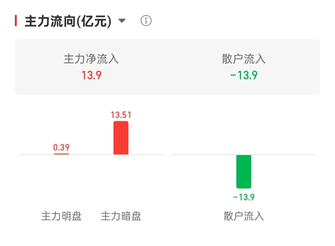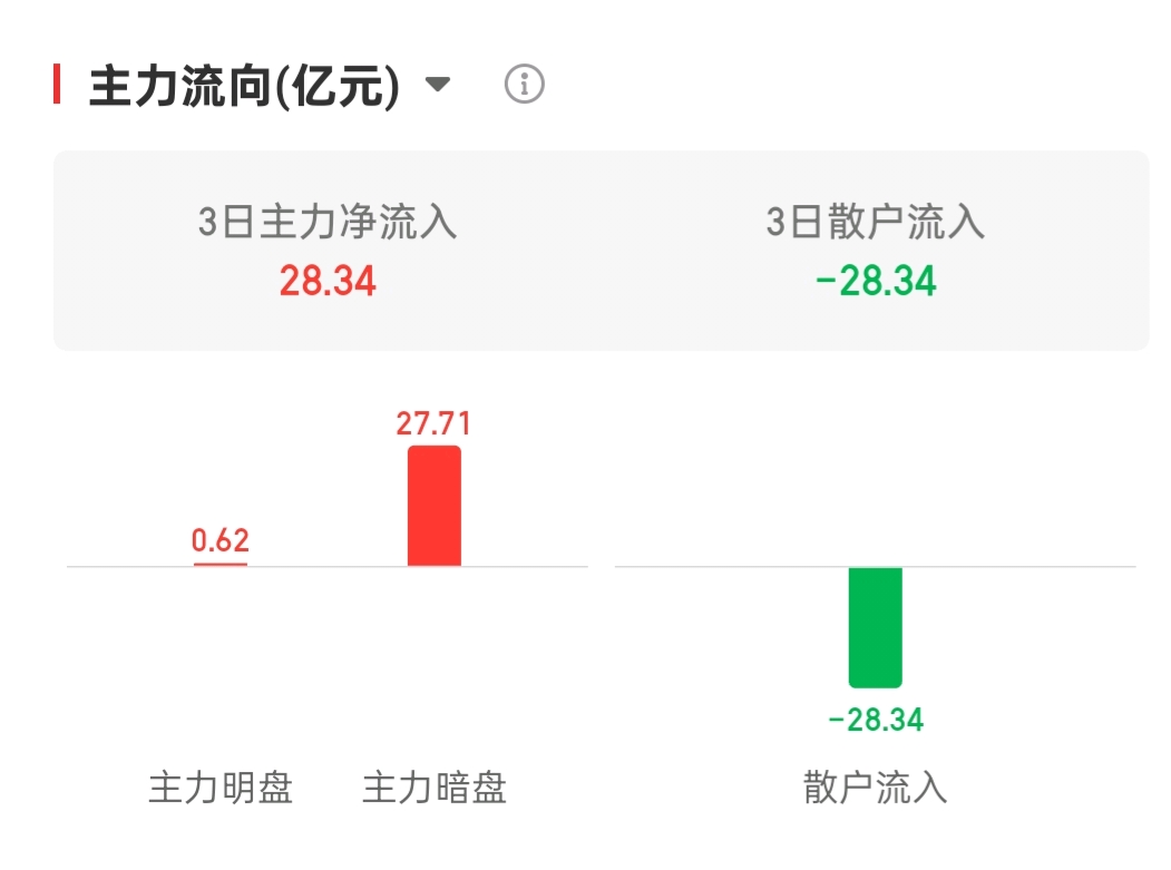 三天主力暗盘流入分别为10.31亿,3.79亿,13.91亿。三天合计28.01