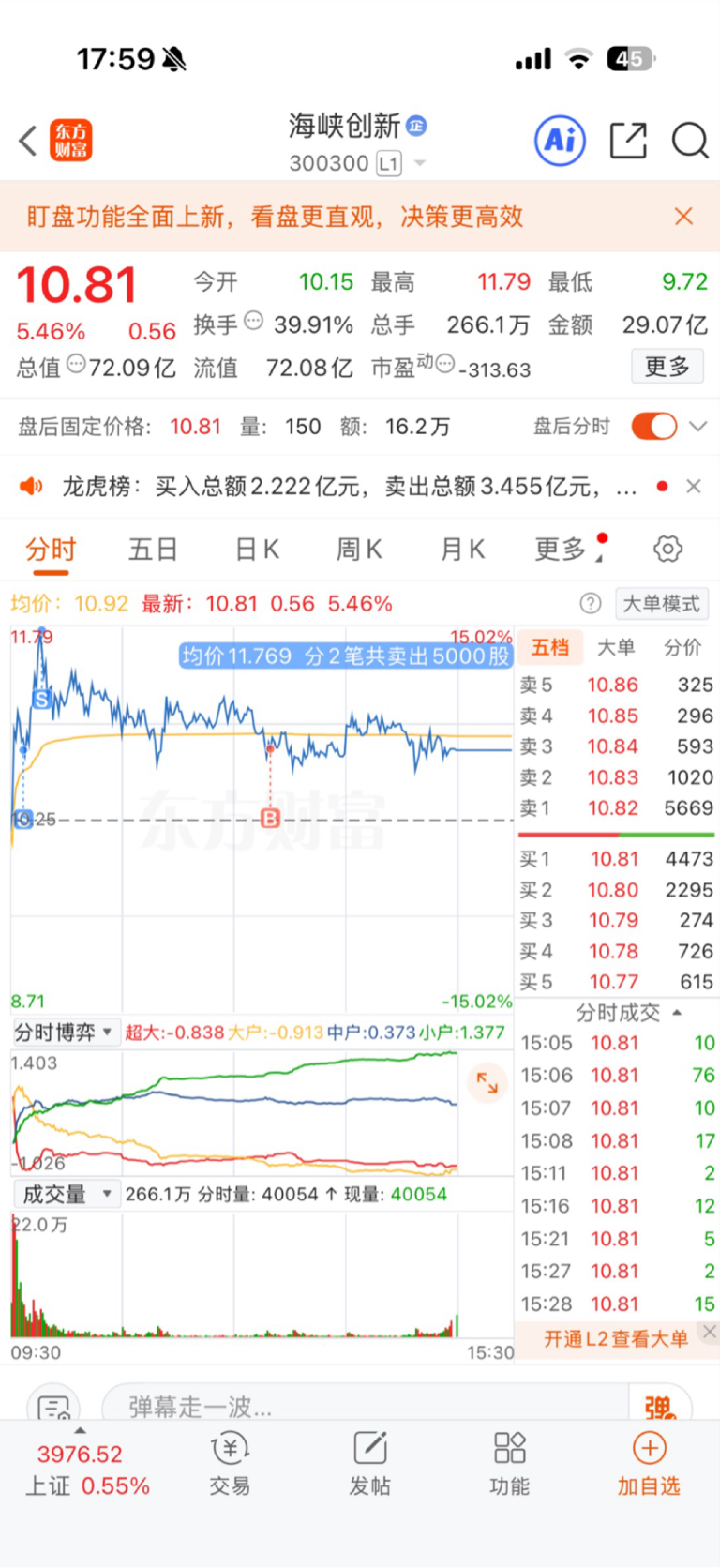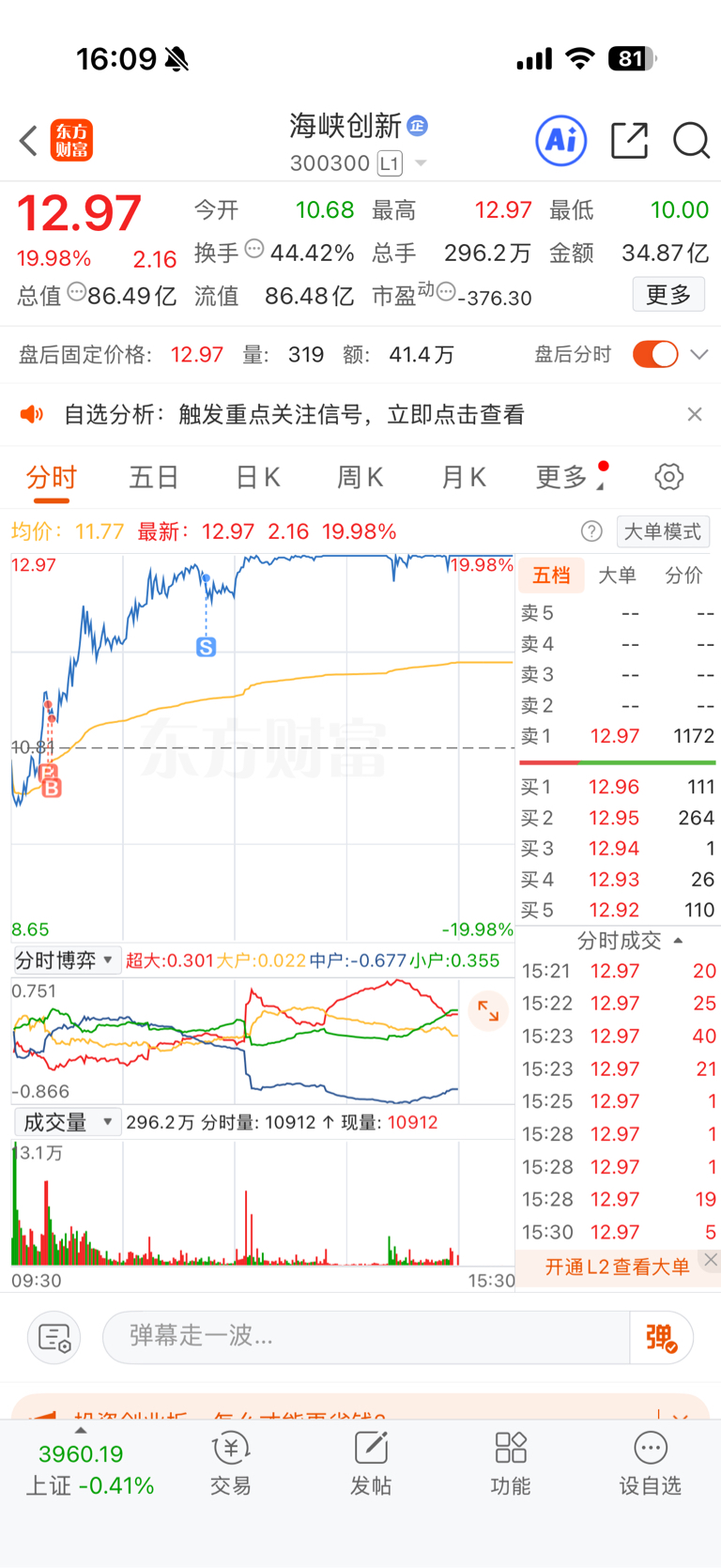 $海峡创新(SZ300300)$ 早上低开没敢进。红了才买进。昨天t的也出掉了。 有点爽